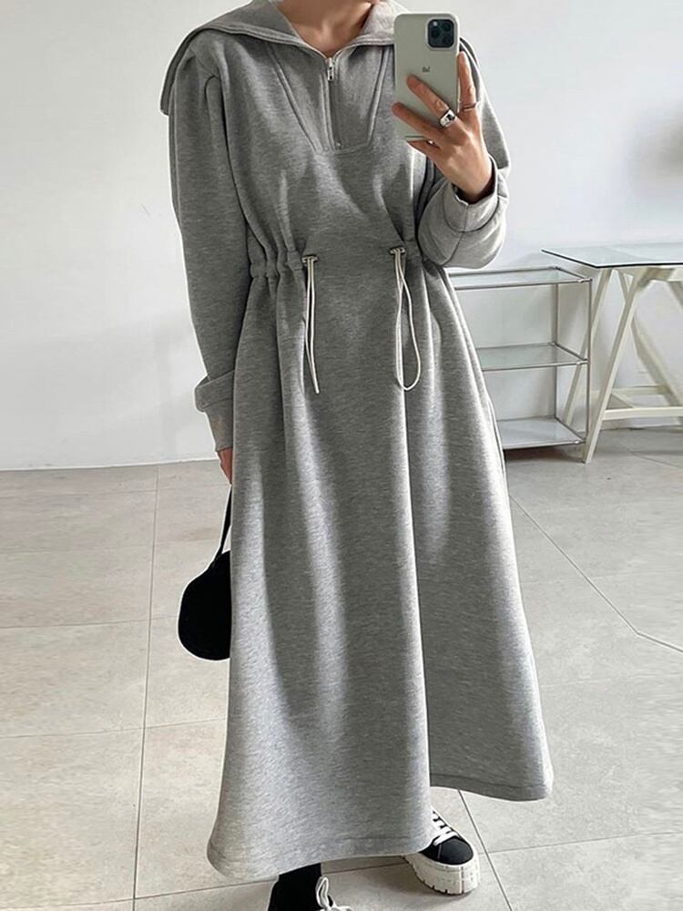 [EWQ] シックハーフオープンカラー巾着ウエスト閉鎖スウェットシャツドレス長袖ドレス秋 A4192 ロング オータム 秋物