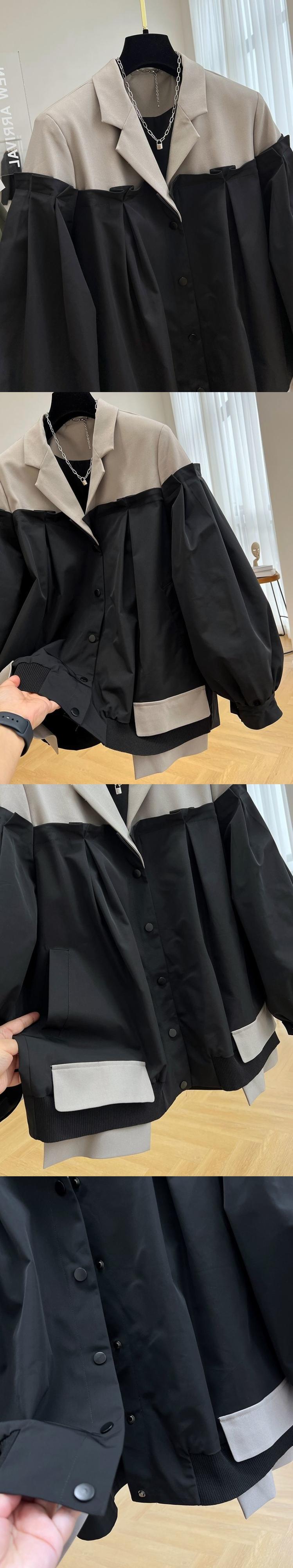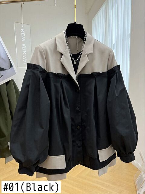 [EWQ] レディース アウター ジャケット パッチワーク フェイク ツーピース コントラスト 長袖 オーバーサイズ コート 秋潮ジャケット 1062 ロング オータム 秋物