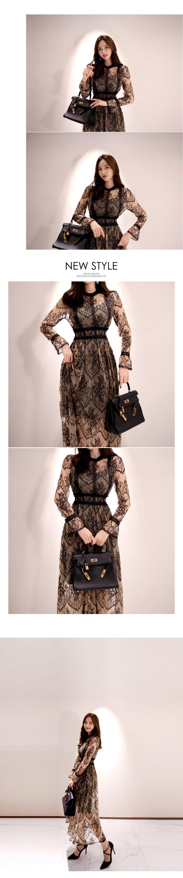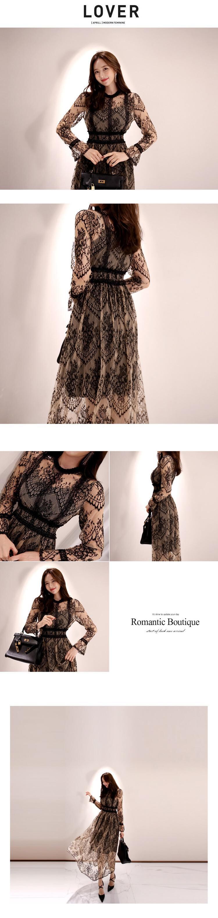 [EWQ] Vestidos 長袖シースルーレースウエストと大きく揺れる美しいドレスローブ秋 6O266H1XL ロング オータム 秋物