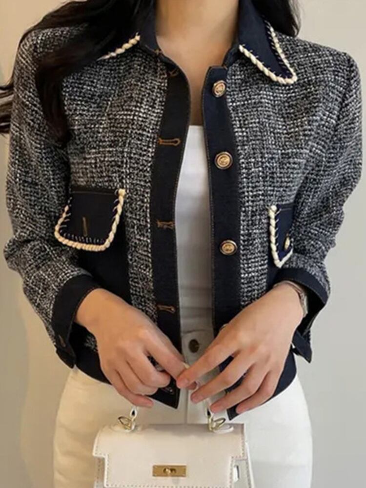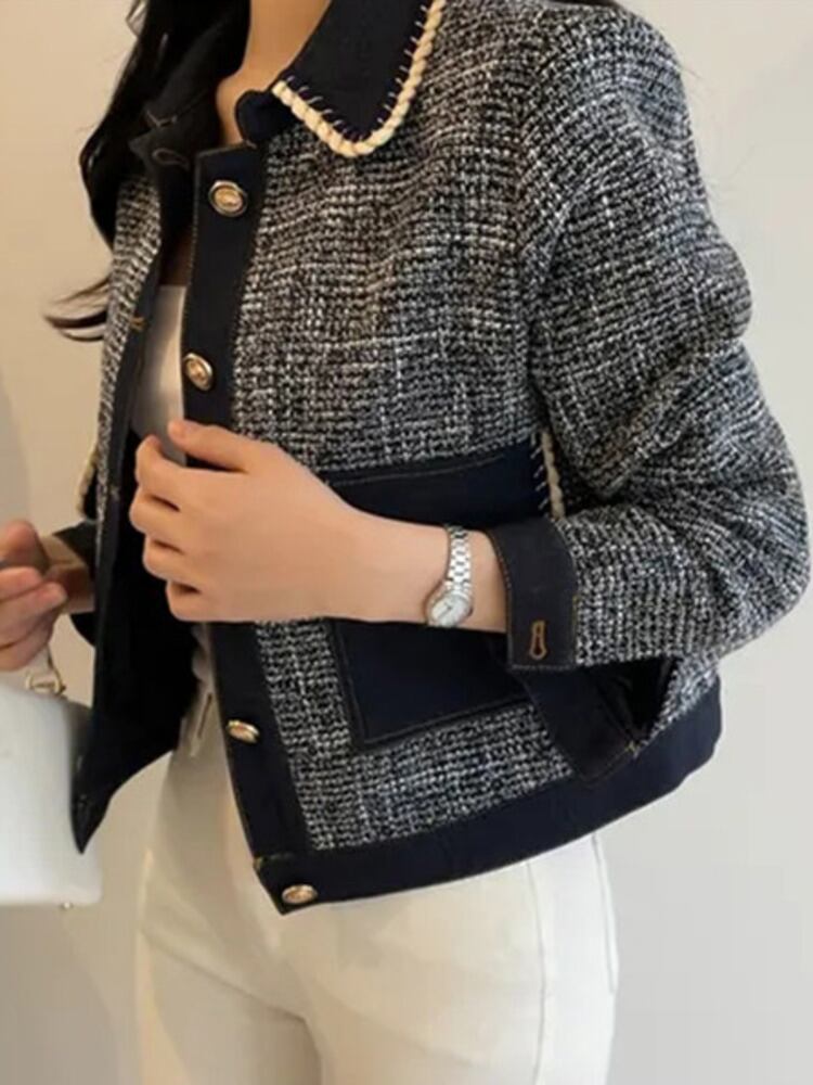 [EWQ] ポケットパッチワークツイードジャケットシックシングルブレストルーズジャケットコート秋冬服 16U4146 オータム 秋物 ウィンター 冬物