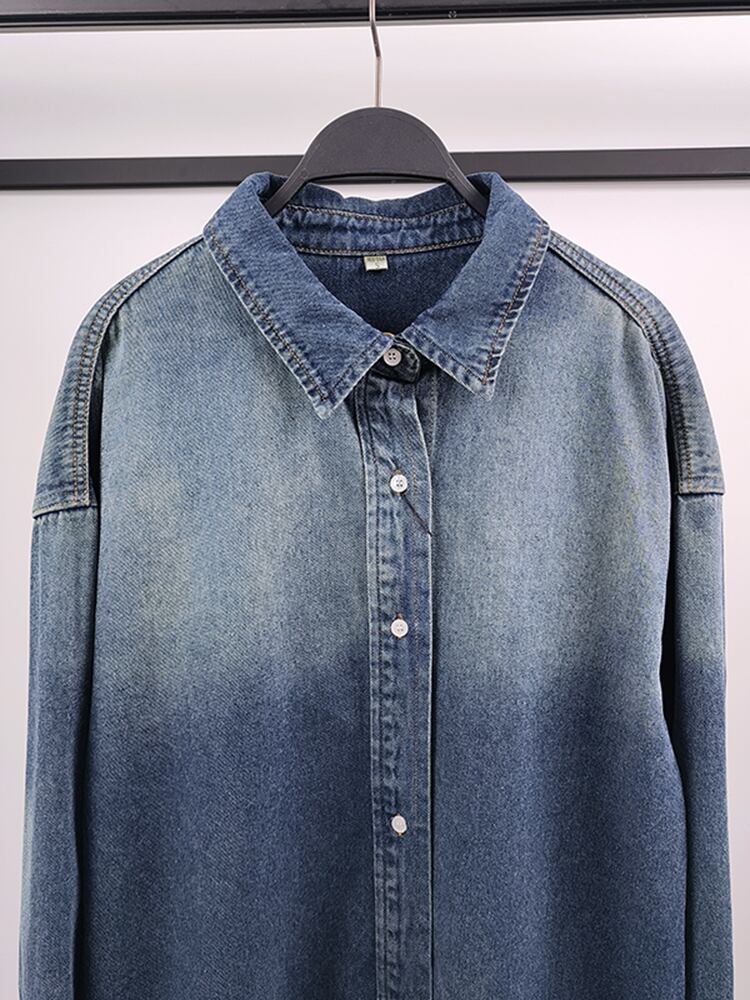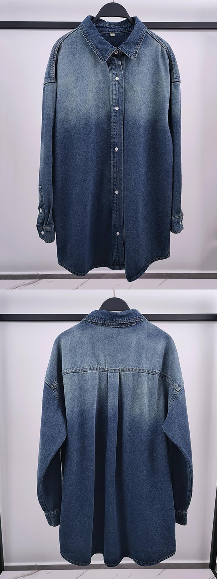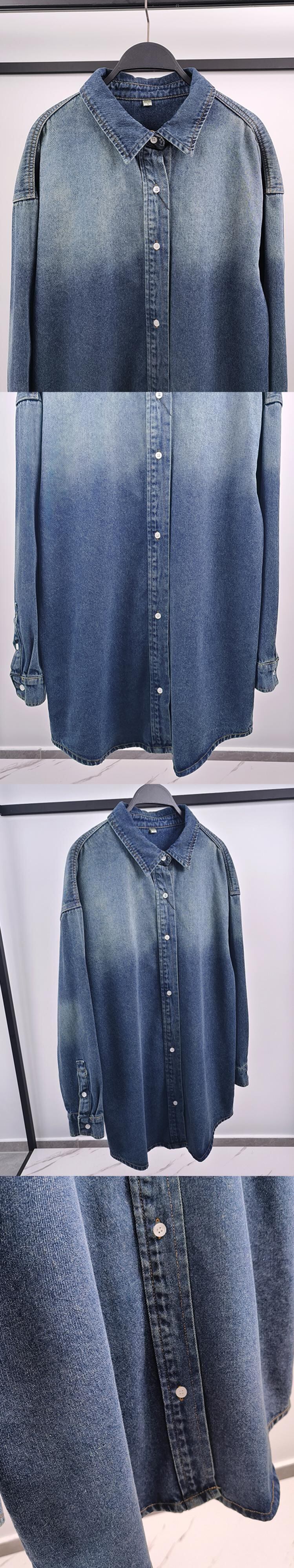 [EWQ] シャツ デニム ジャケット レディース シングルブレスト 長袖 ブルー グラデーション丈 ジャケット コート 秋冬 16U4978 ロング オータム 秋物 ウィンター 冬物