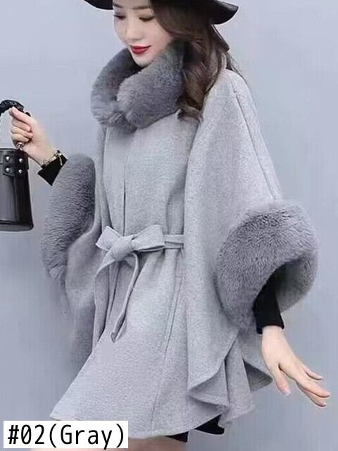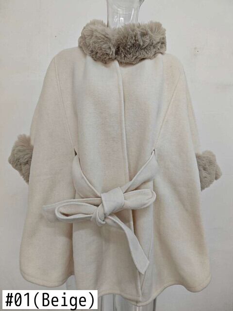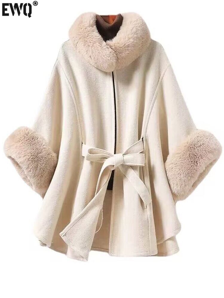 [EWQ] フェイクラビットヘア襟ショールマントコート秋冬潮保温厚い包帯ジャケット 16U4529 オータム 秋物 ウィンター 冬物 ファー