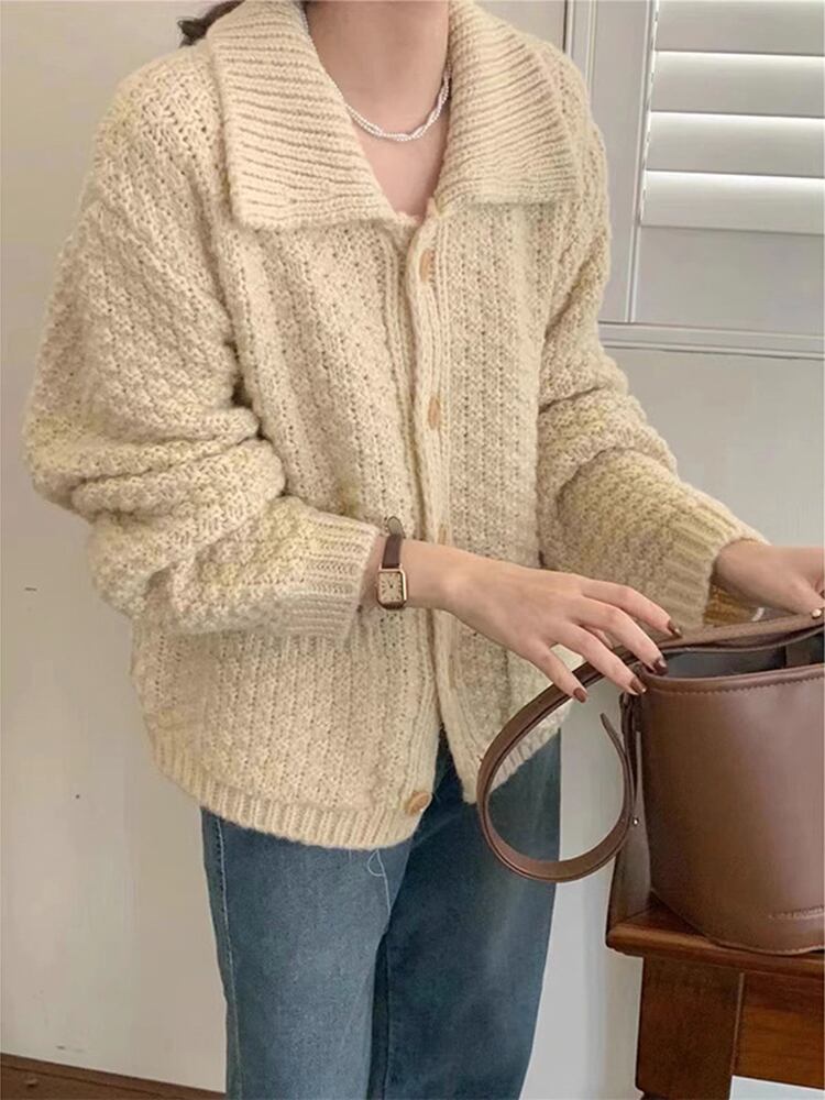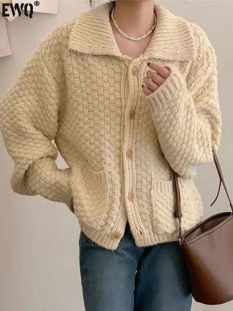 [EWQ] 甘いシングルブレストカーディガンコートダブルポケットスプライシングルーズセータージャケット秋冬 16U3992 大人ガーリー スウィート キュート カジュアル オータム 秋物 ウィンター 冬物