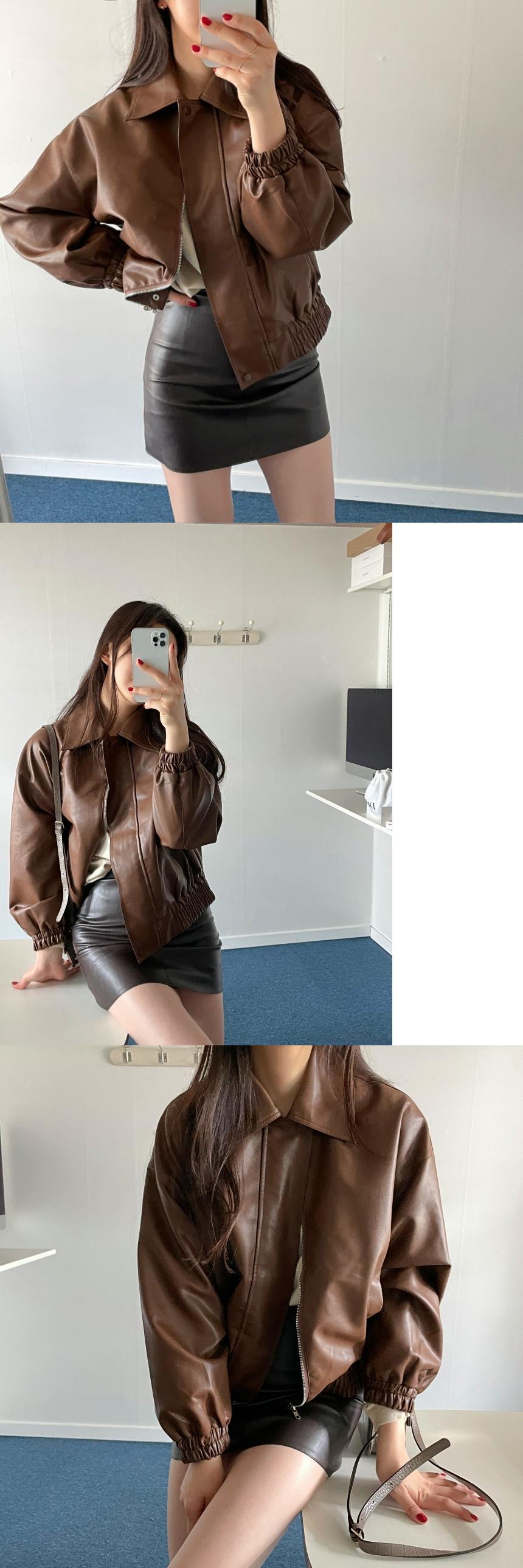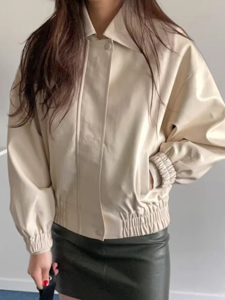[EWQ] Pu レザージャケット長袖裾弾性ジッパージャケット生き抜く服秋冬 16U4608 ロング エラスティック 伸縮 オータム 秋物 ウィンター 冬物