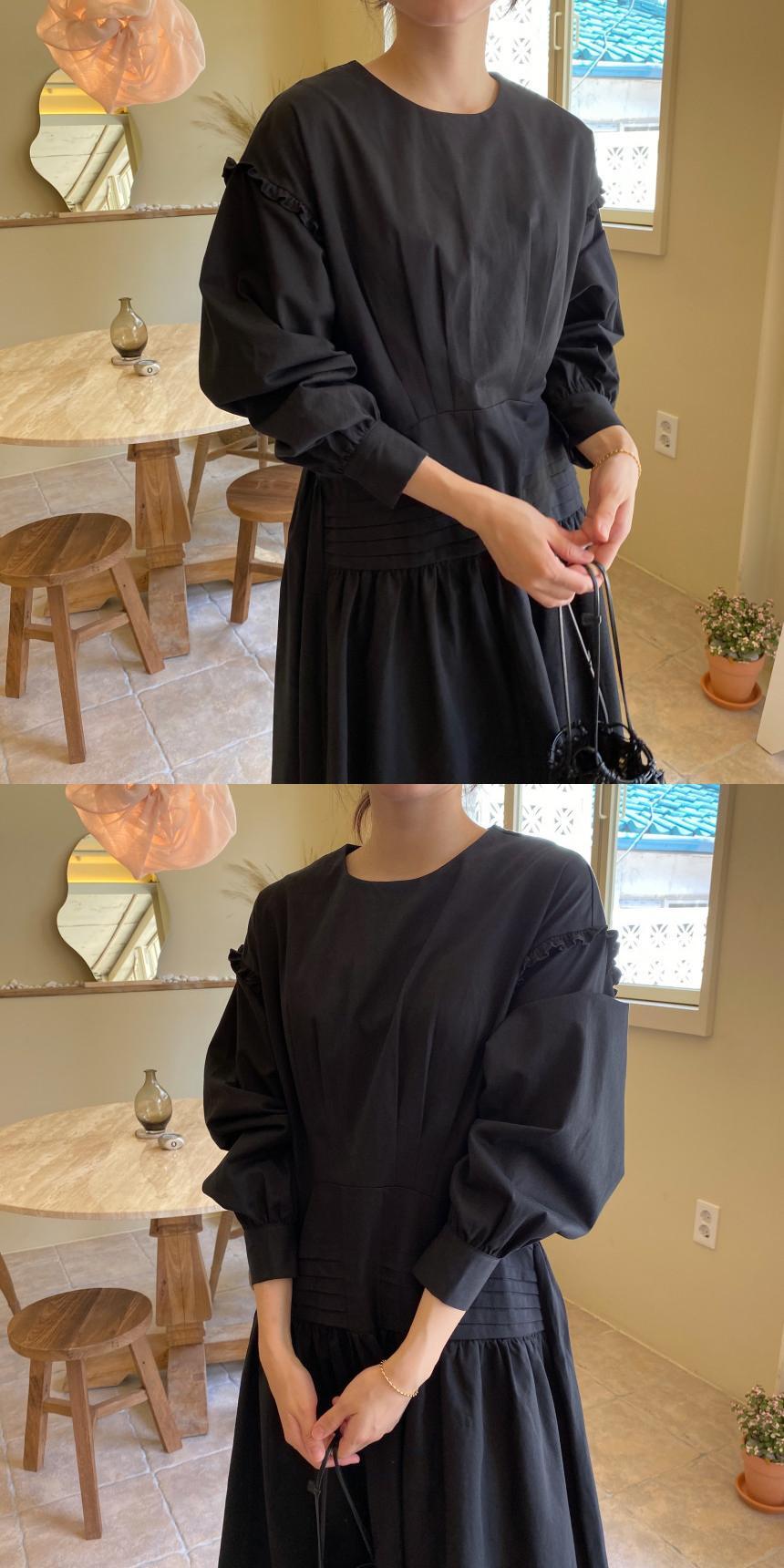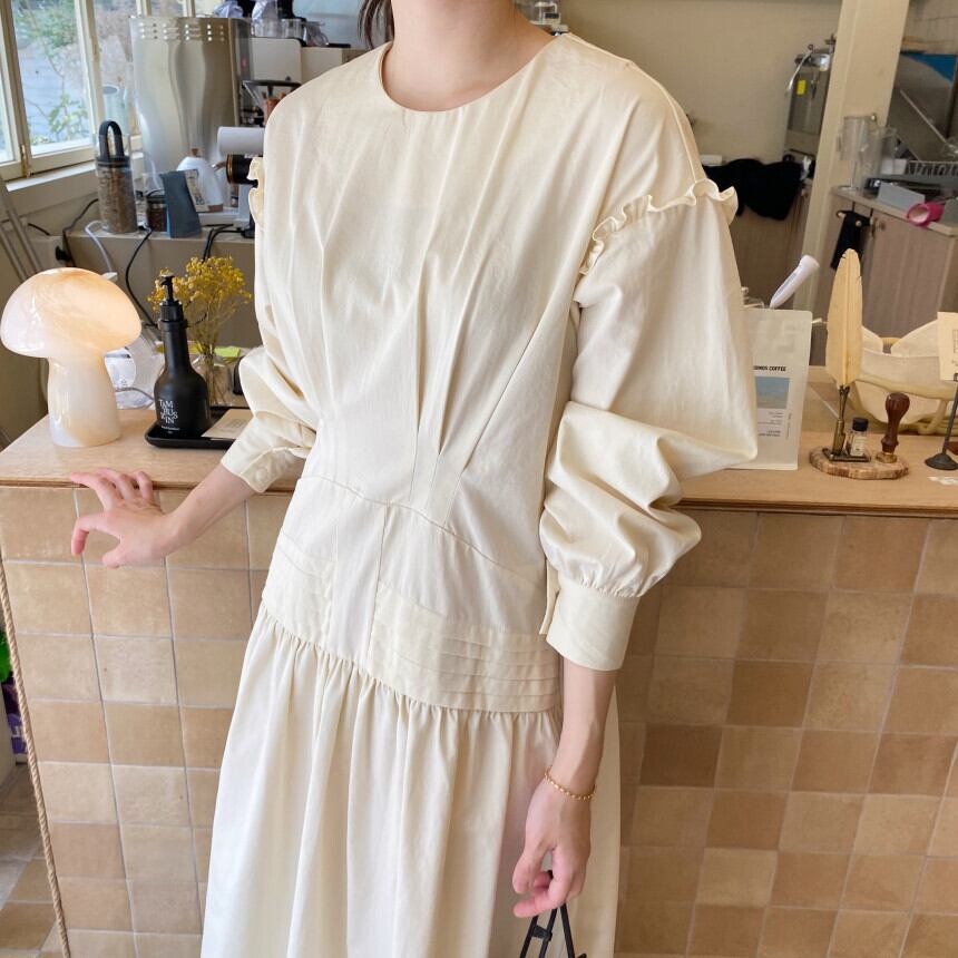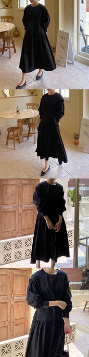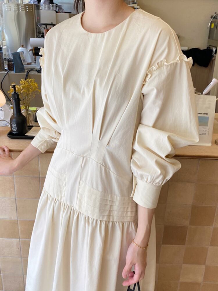 [EWQ] 真菌パッチワーク長袖パーティードレスプリーツウエスト黒アプリコットドレス Vestido 秋冬 16U4609 ロング ブラック オータム 秋物 ウィンター 冬物