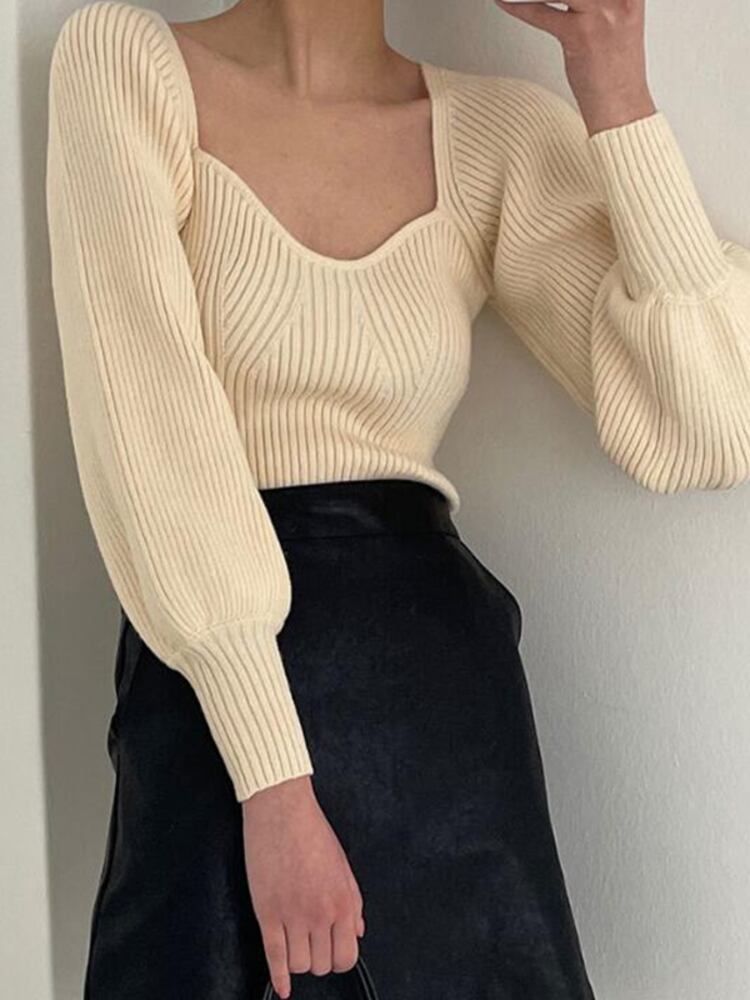 [EWQ] スクエアネックスリムフィット弾性セーター長袖レッドプルオーバーニット秋冬トップ 16U3586 ロング エラスティック 伸縮 オータム 秋物 ウィンター 冬物 スクウェア