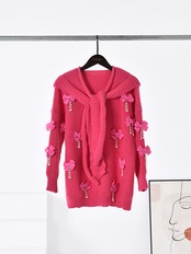 [EWQ] 蝶ネクタイパールテル装飾セーター長袖フード付きルーズプルオーバーニット秋冬 16O498 ロング リボン オータム 秋物 ウィンター 冬物 真珠