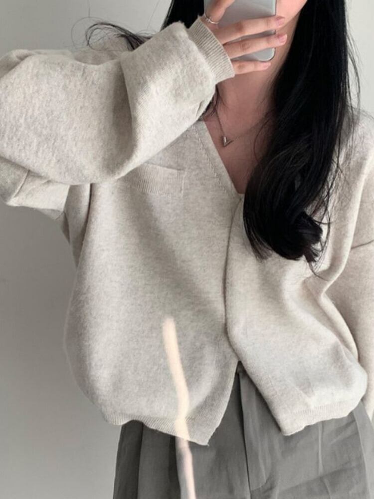 [EWQ] V ネックルーズカーディガンカーディガンコート長袖くるみボタンセータージャケット秋冬 16U4615 ロング レッド オータム 秋物 ウィンター 冬物 Vネック
