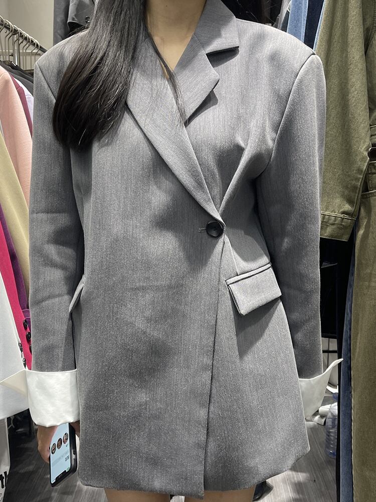 [EWQ] サイドバックルブレザーコートオフィスレディ長袖ルーズスーツジャケット秋冬服 16U4659 ロング オータム 秋物 ウィンター 冬物 会社 学校 通勤や通学にも