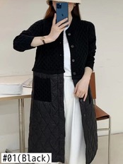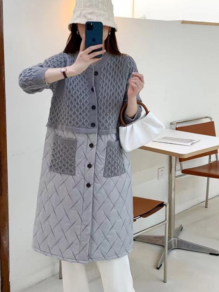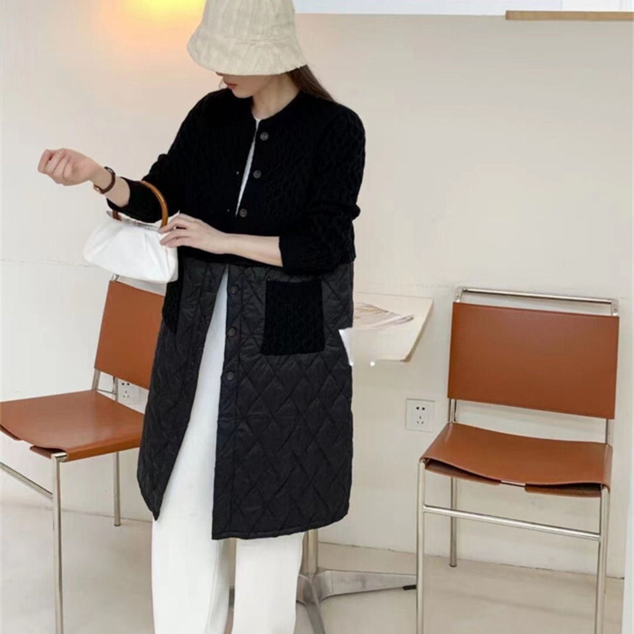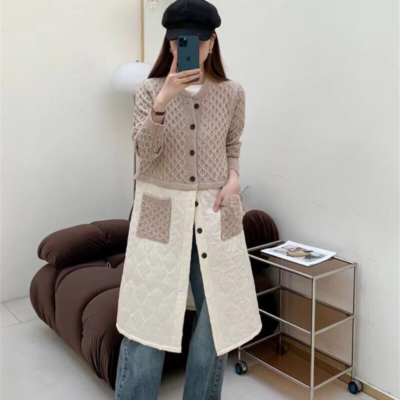 [EWQ] 厚手綿パッチワークカーディガンコート長袖ポケットスプライシングセータージャケット秋冬潮 16U4014 ロング コットン オータム 秋物 ウィンター 冬物