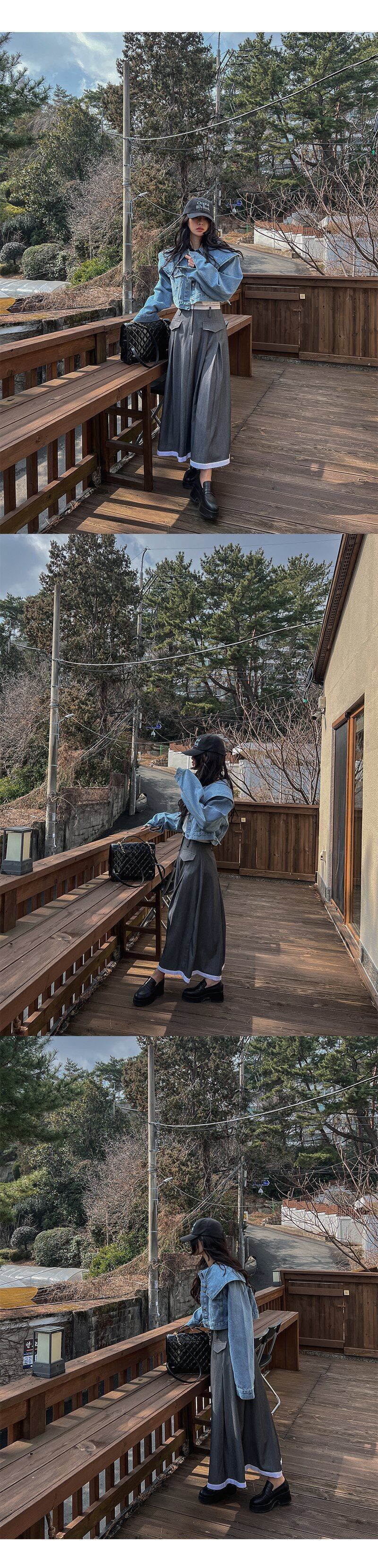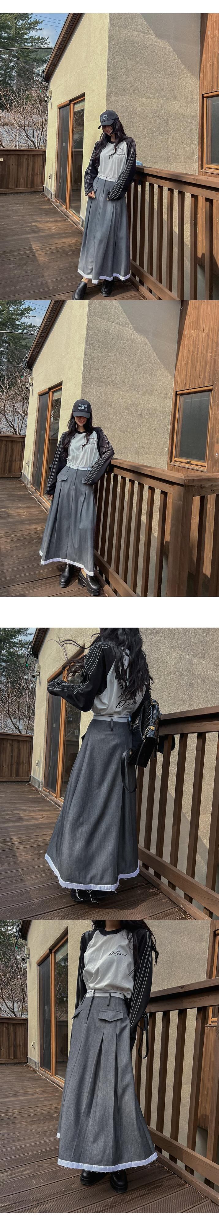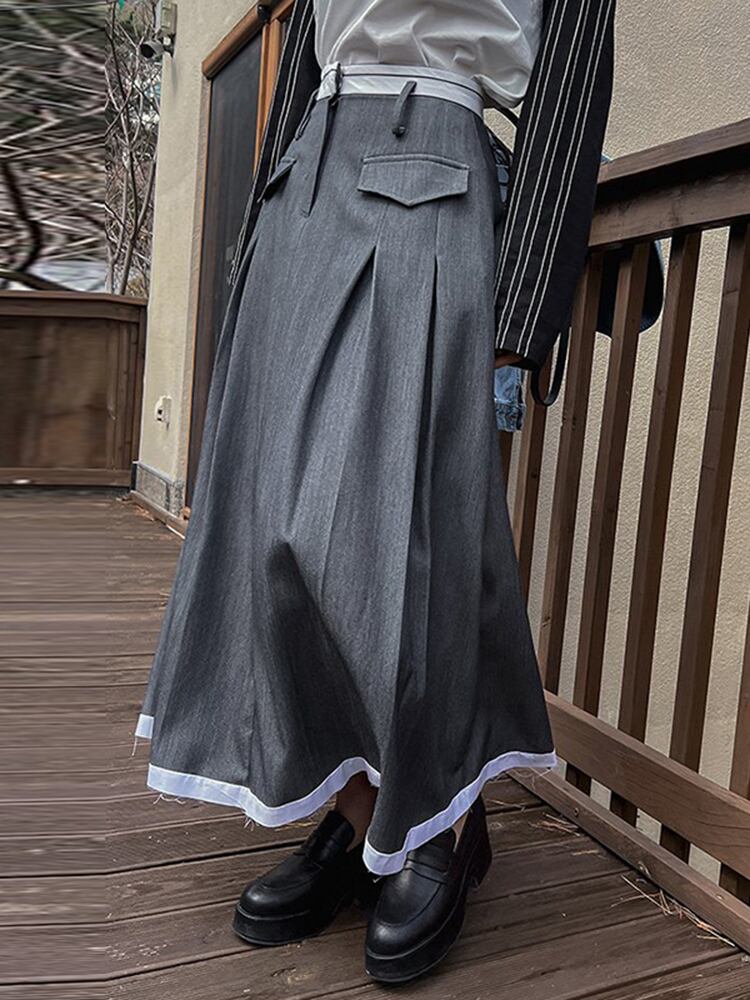 [EWQ] フェイクポケットパッチワークプリーツスカートウエストミッドカーフスカート秋冬ファルダ 16U4801 オータム 秋物 ウィンター 冬物