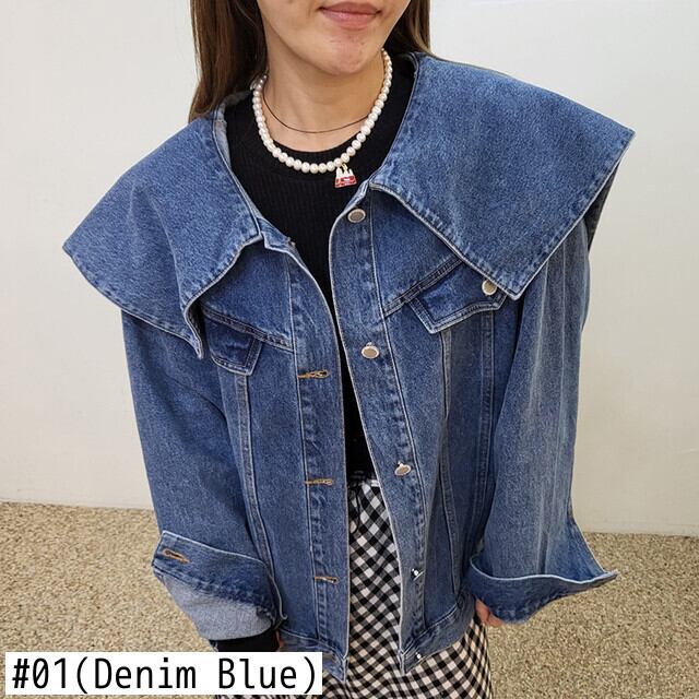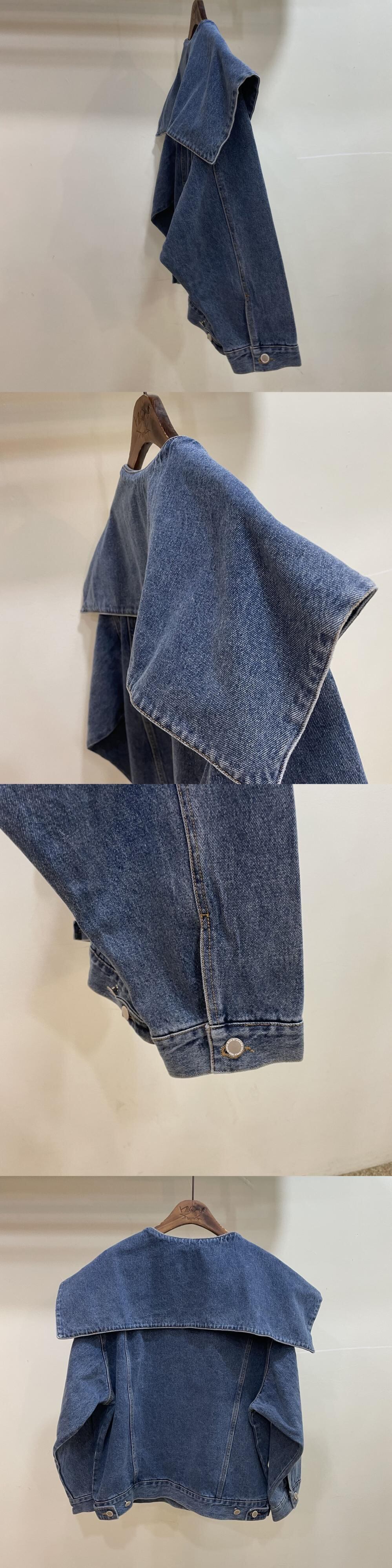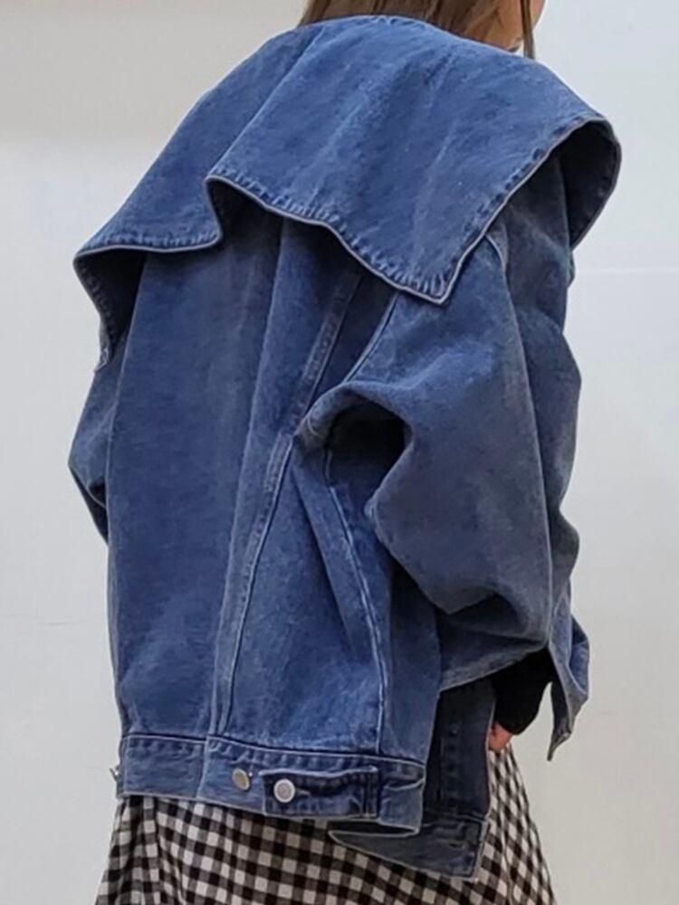 [EWQ] セーラー襟メタルボタンルーズデニムジャケットブルー長袖パッチワークジャケットコート秋冬 16U4623 ロング オータム 秋物 ウィンター 冬物