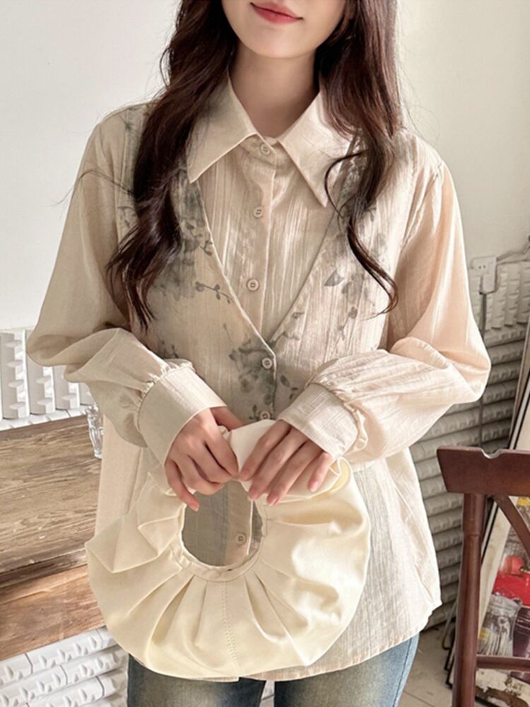 [EWQ] プリントコントラストタイダイシャツ長袖フェイク 2 ピースパッチワークルーズ秋冬 16U4209 ロング オータム 秋物 ウィンター 冬物
