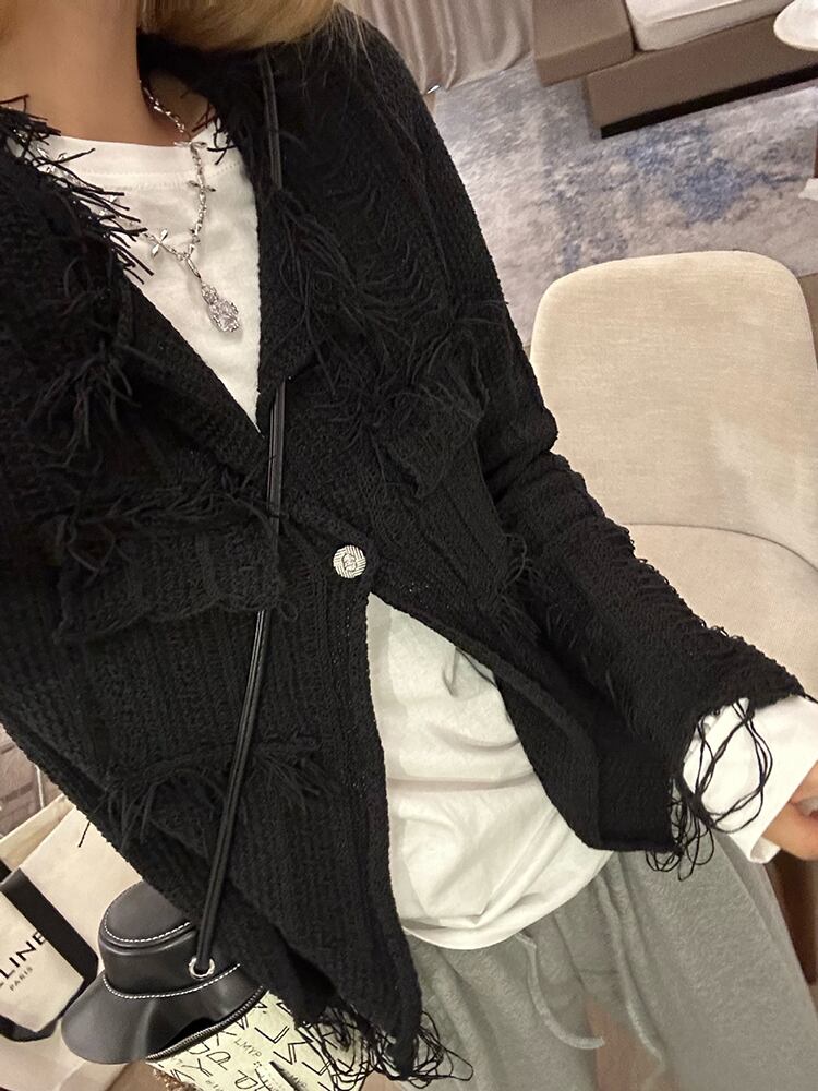 [EWQ] 不規則中空アウトテルカーディガンコートセクシー長袖薄い白セータージャケット秋冬 16U4501 ロング ホワイト オータム 秋物 ウィンター 冬物