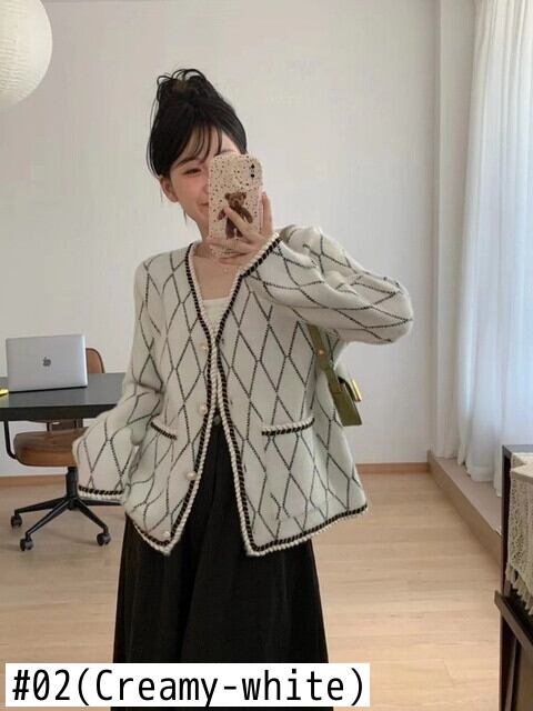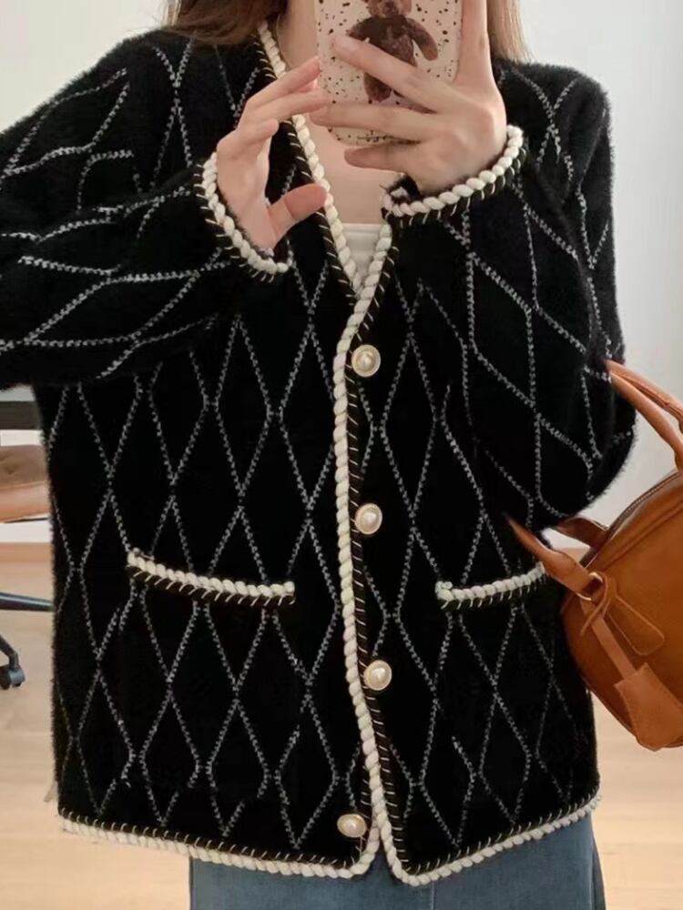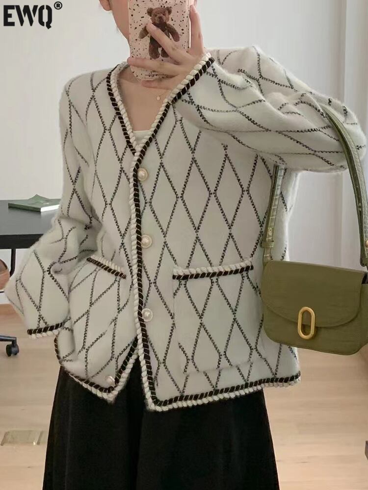[EWQ] ソフトミンクカシミヤカーディガンコートコントラスト長袖ポケットセータージャケット秋冬 16U4071 ロング オータム 秋物 ウィンター 冬物