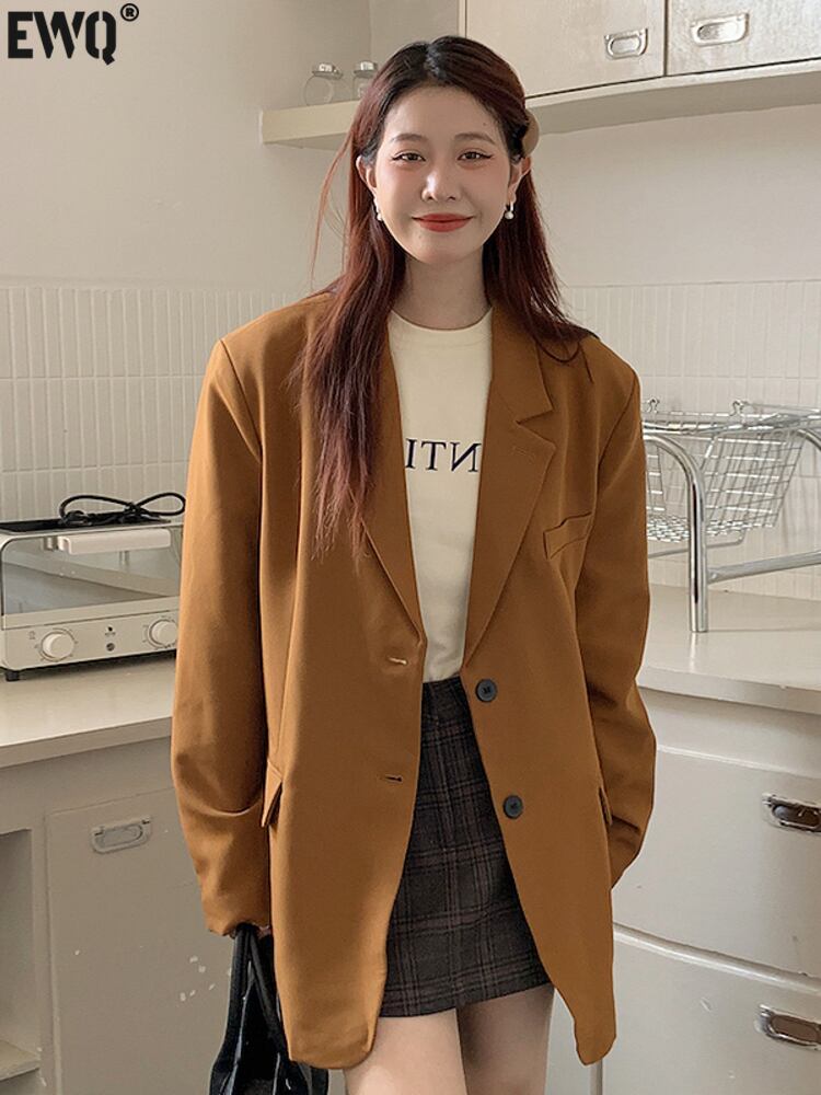 [EWQ] 2 ボタン ブレザー コート レディース 長袖 ルーズ オレンジ スーツ ジャケット 秋冬 潮 16U4295 ロング オータム 秋物 ウィンター 冬物