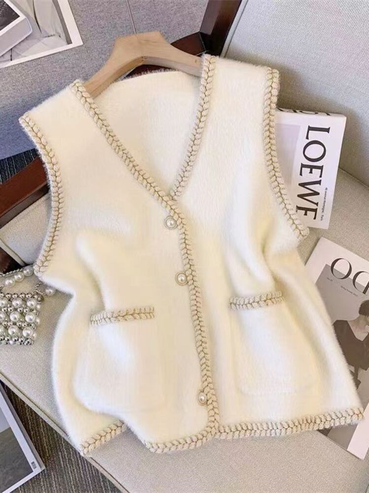 [EWQ] 甘くてトレンディシングルブレストと美しいアウターウェアセーターミンクベルベットベスト秋 16O044 大人ガーリー スウィート キュート カジュアル オータム 秋物