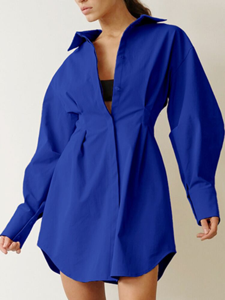 [EWQ] マルチカラープリーツウエストシャツ白裾非対称長袖トップ秋冬 16U4938 ロング ホワイト オータム 秋物 ウィンター 冬物