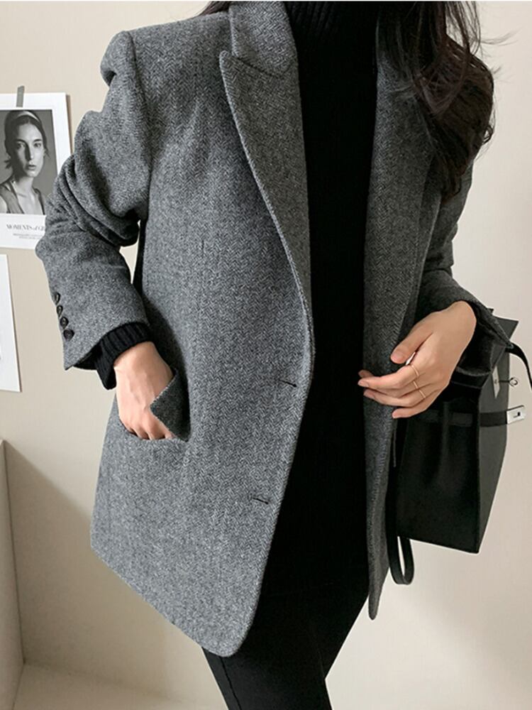 [EWQ] オフィスレディ ウールジャケット 秋冬 シングル胸ポケットスーツ ノッチネックジャケット コーヒーコート オータム 秋物 ウィンター 冬物 会社 学校 通勤や通学にも