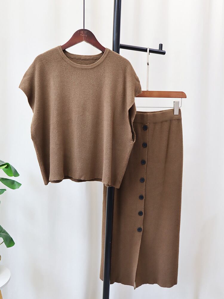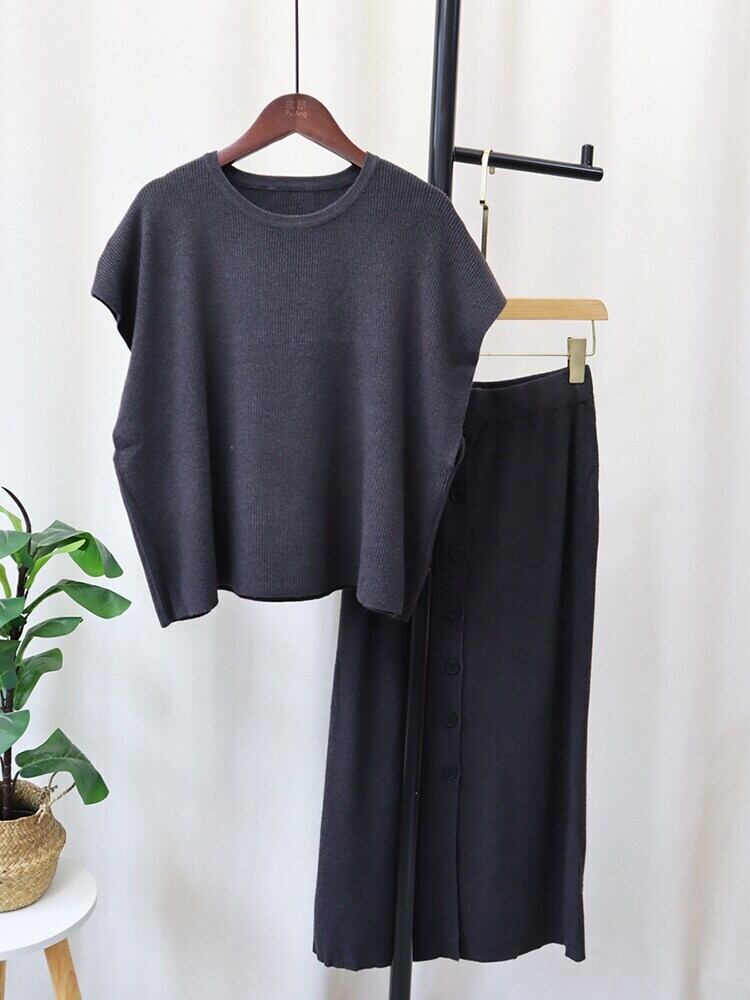 [EWQ] ニットツーピーススーツルーズセーターベストトップ + シングルブレストスリム弾性ニットスカート秋セット U3513 エラスティック 伸縮 オータム 秋物