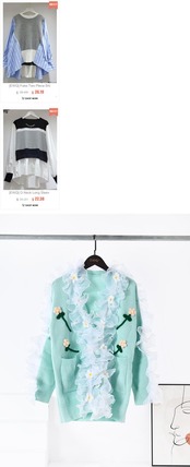[EWQ] メッシュパッチワーク甘いカーディガンコート長袖花刺繍セータージャケット秋冬 6O492 ロング 大人ガーリー スウィート キュート カジュアル オータム 秋物 ウィンター 冬物 フラワーデザイン