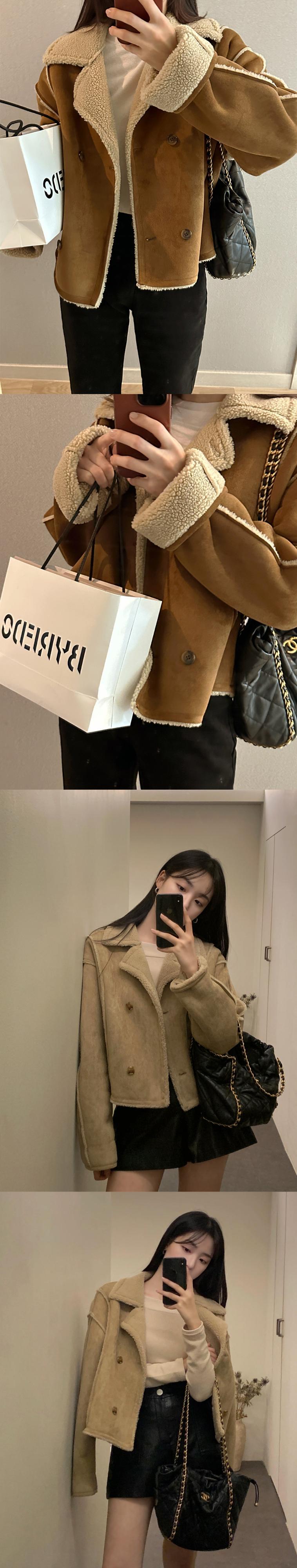 [EWQ] ラムズウールパッチワーク毛皮コート冬厚く暖かいダブルブレスト長袖冬ジャケット生き抜く 16U4946 ロング ウィンター 冬物