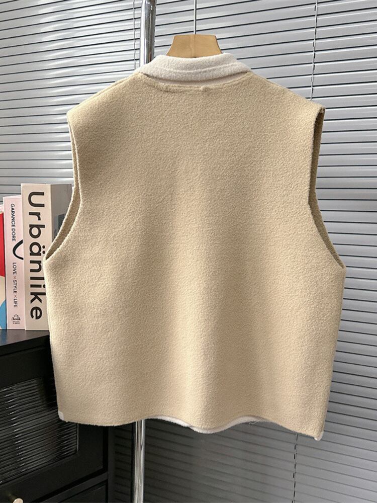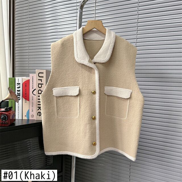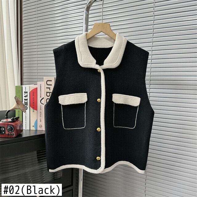[EWQ] ルーズフェイクポケットニットベストレディース多用途コントラストセータータンクトップ秋冬服 16U5099 オータム 秋物 ウィンター 冬物
