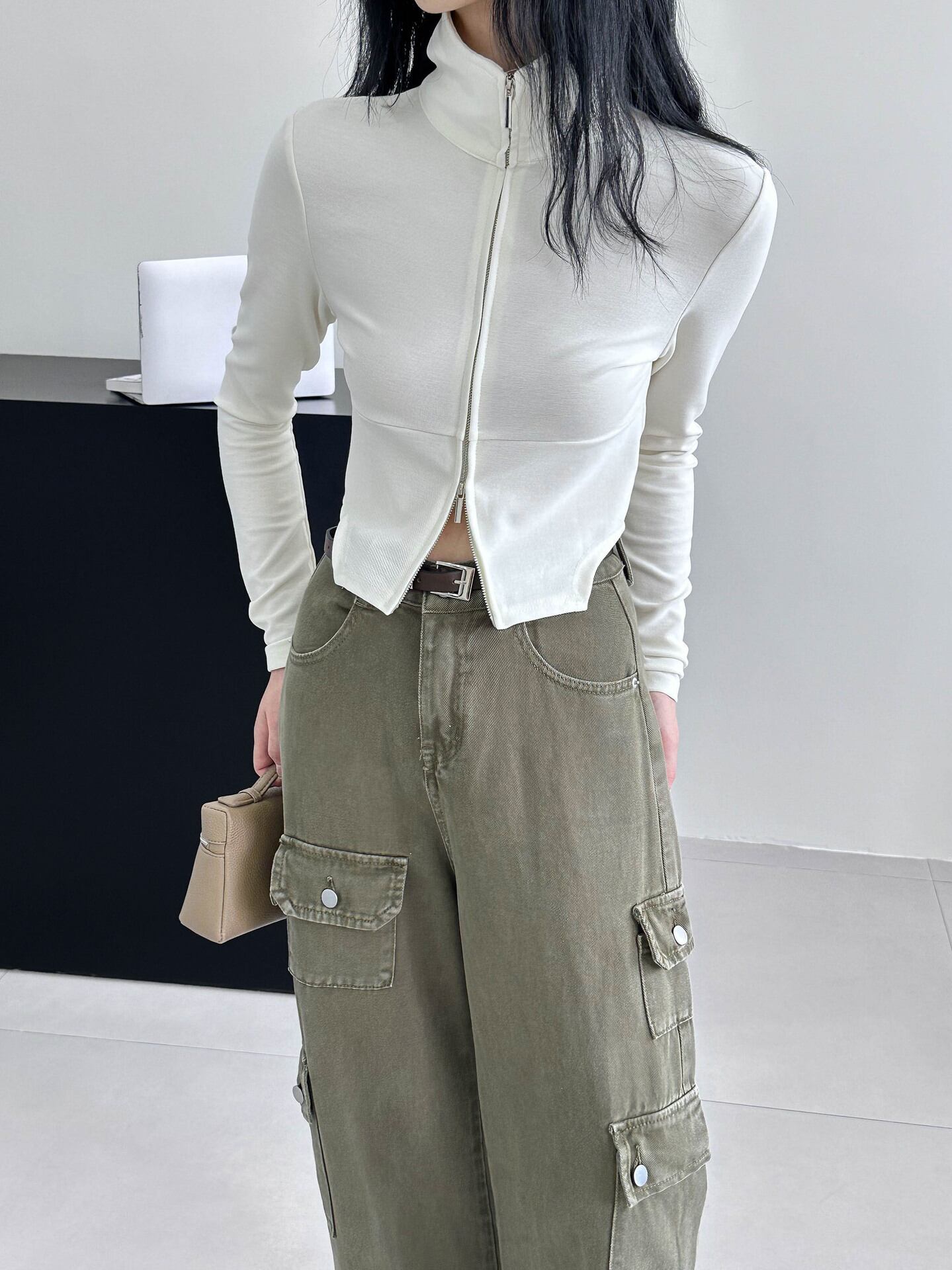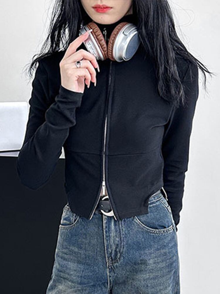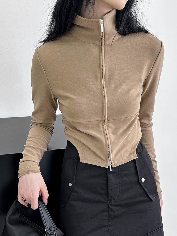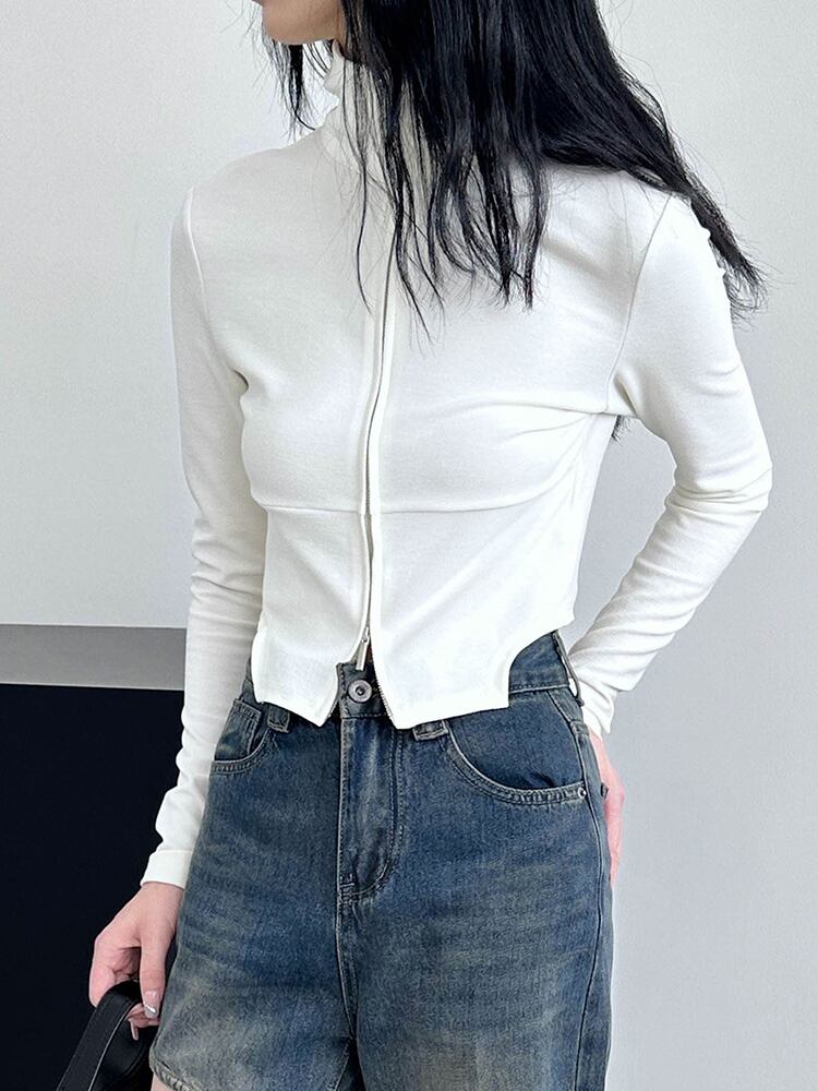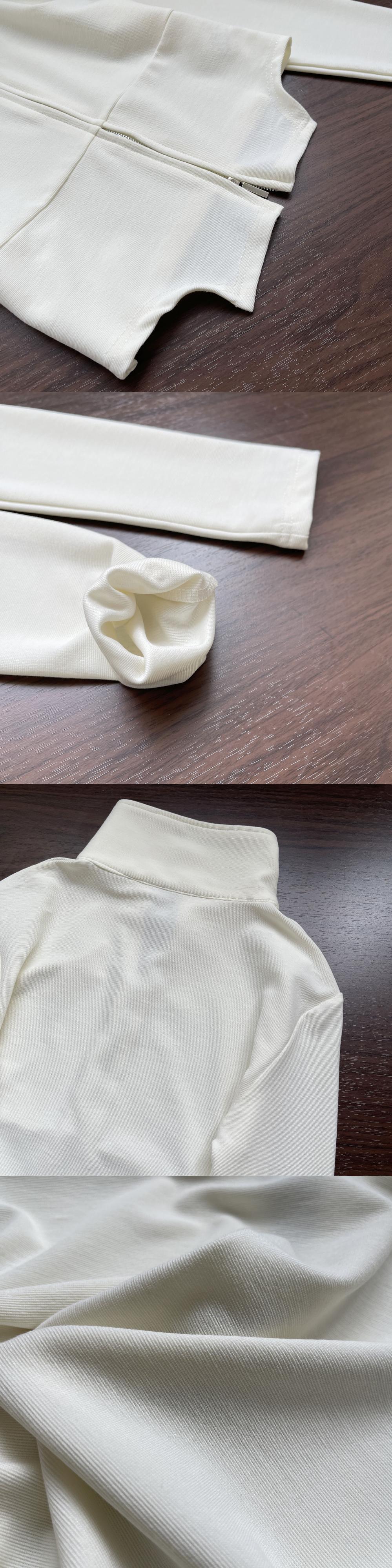 [EWQ] 長袖スリム弾性スウェット白スタンドネックジッパープルオーバートップ秋冬 16U4779 ロング ホワイト シャツ エラスティック 伸縮 オータム 秋物 ウィンター 冬物