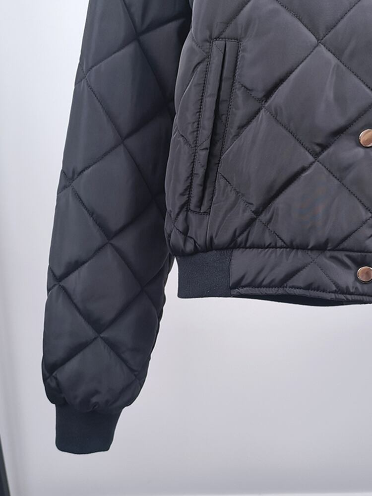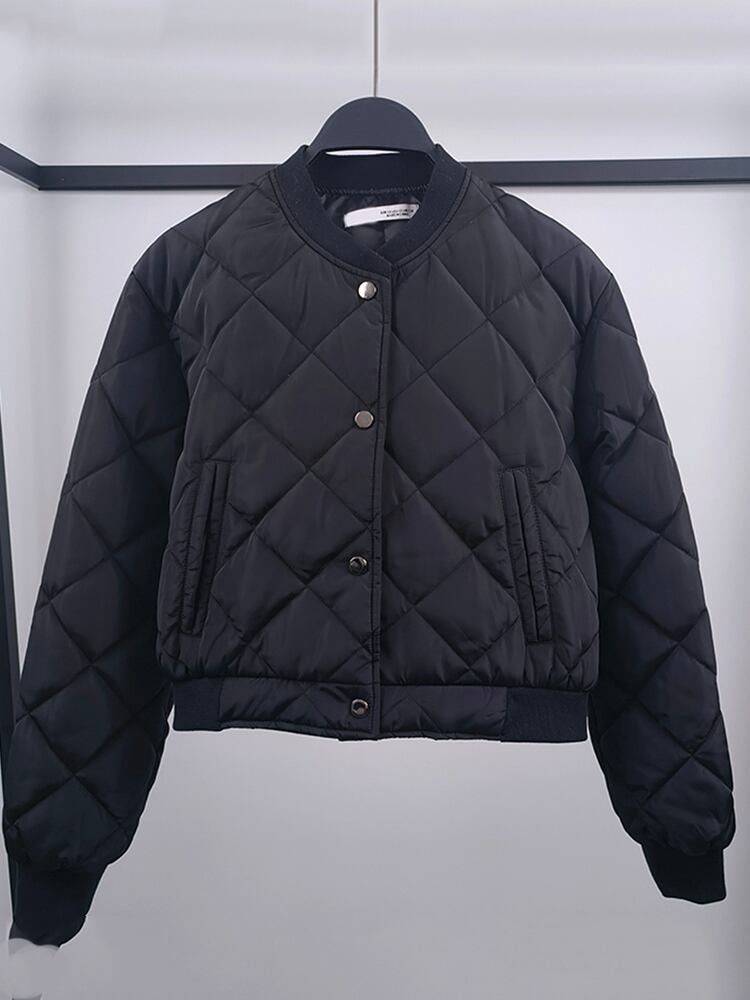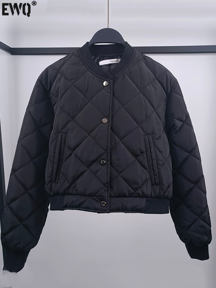 [EWQ] ウェーブコットンダウンコート黒シングルブレスト冬厚く暖かい綿ジャケット秋 16U4986 ブラック オータム 秋物 ウィンター 冬物