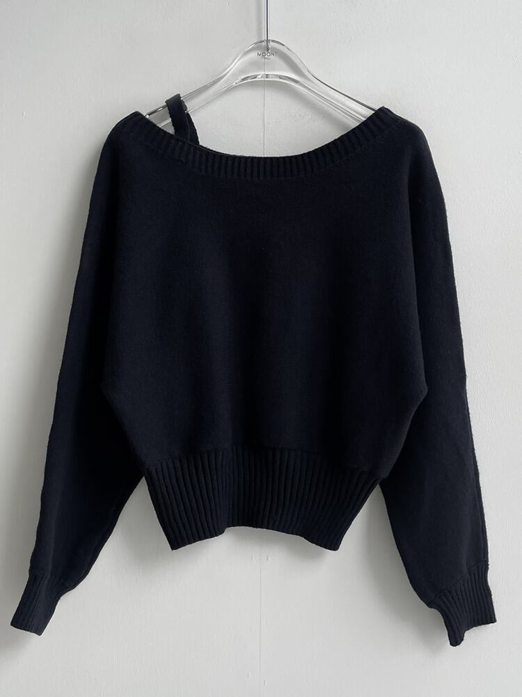 [EWQ] スラッシュネックオフショルダーセクシーセーターバットウィングスリーブルーズプルオーバーニット秋冬 16U4300 オータム 秋物 ウィンター 冬物