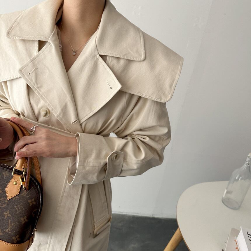 [EWQ] レディース ダブルブレスト バックル レースアップ ウインドブレーカー コート 長袖 トレンチ 秋冬 16U4444 ロング オータム 秋物 ウィンター 冬物