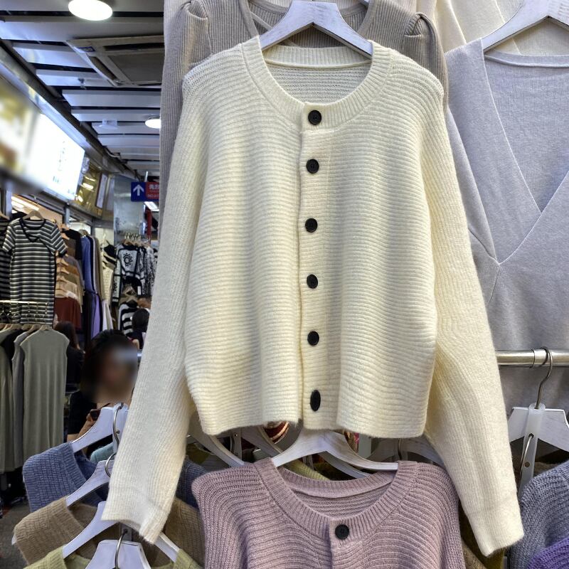 [EWQ] グレーセータージャケットシングルブレスト長袖ルーズカーディガンコート秋冬服 16U4713 ロング オータム 秋物 ウィンター 冬物