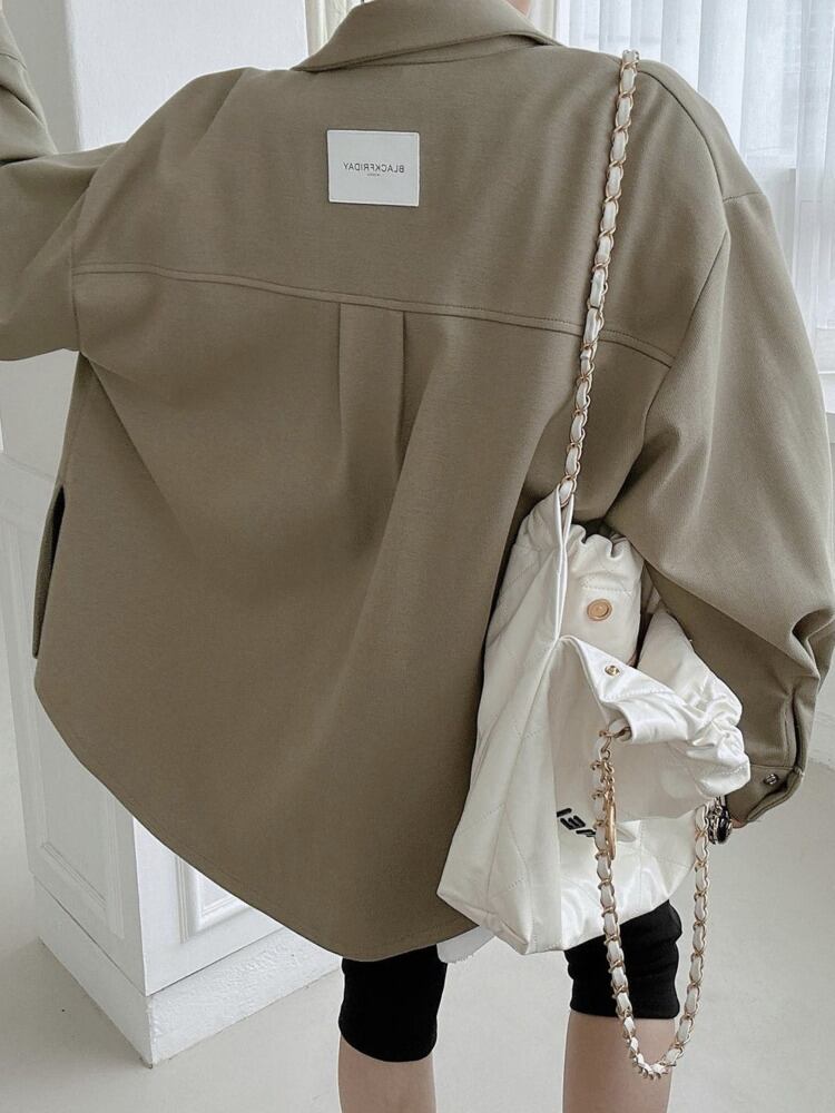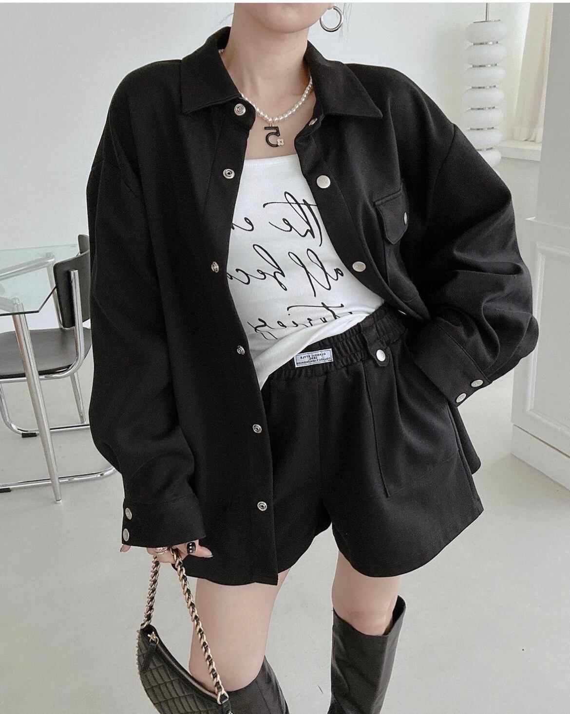 [EWQ] シングルブレスト ブラック ジャケット ルーズ コート + ウエスト ワイドレッグ ショーツ レディース 2 点セット 秋 U4719 オータム 秋物 ブルマー ワイドパンツ