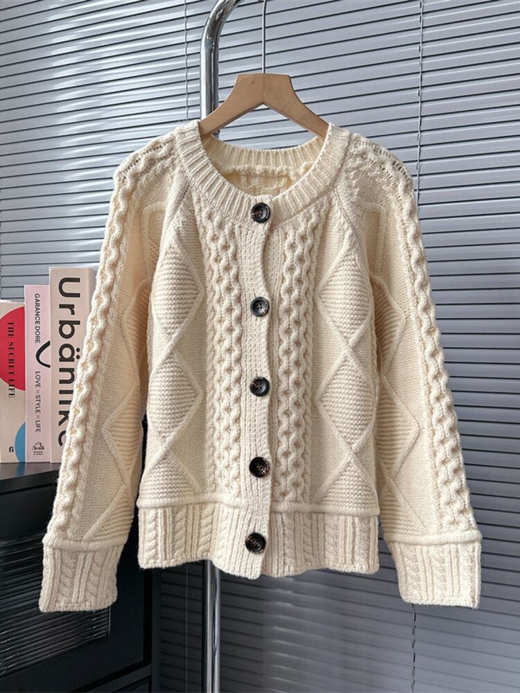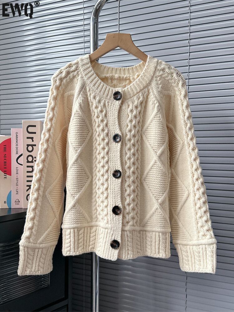 [EWQ] ソフトツイスト ニットカーディガンコート レディースバージョン シングルブレスト ベージュ セーター ジャケット 秋冬 16U5114 オータム 秋物 ウィンター 冬物