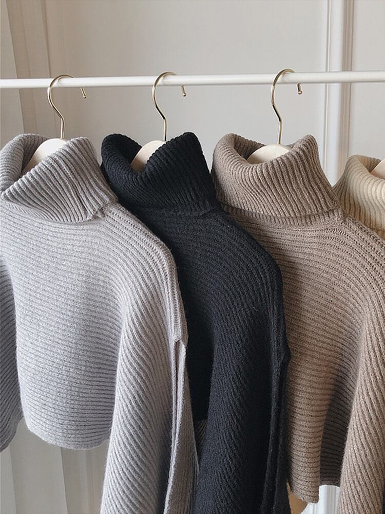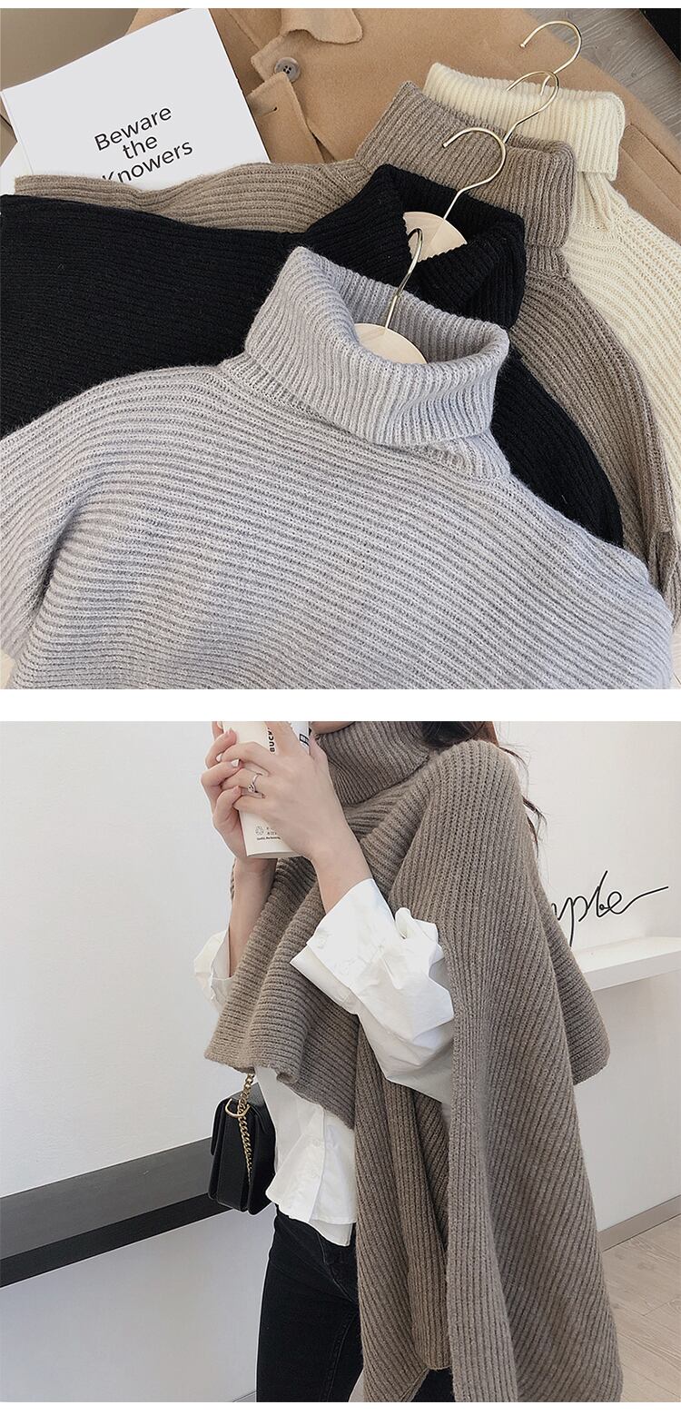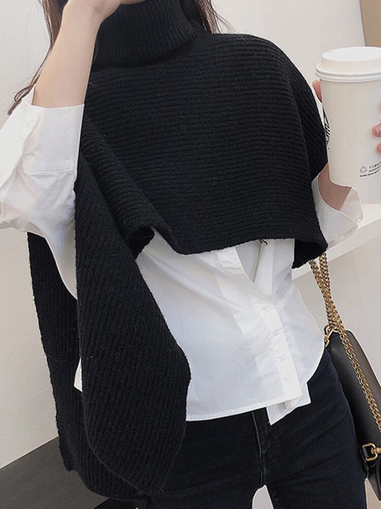 [EWQ] 非対称タートルネックセーターグレーオールマッチ服秋冬ノースリーブニットプルオーバートップ 16U4873 オータム 秋物 ウィンター 冬物