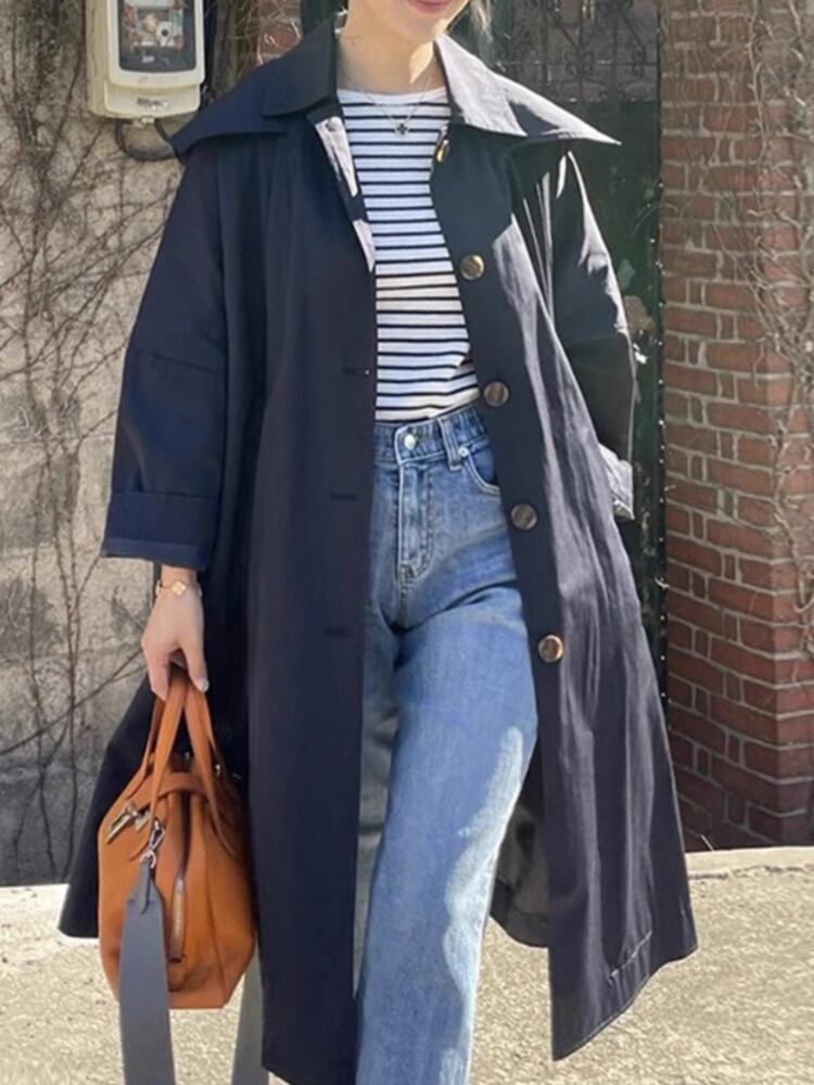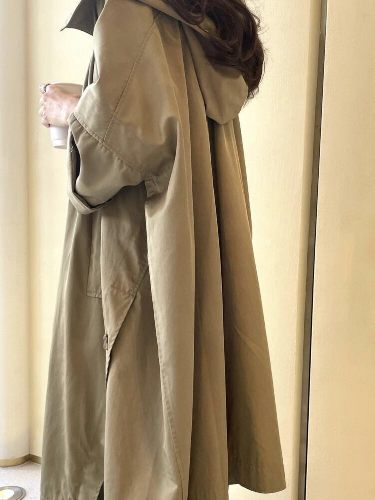 [EWQ] ルーズフード付きウインドブレーカージャケット長袖シングルブレスト秋冬潮トレンチジャケット 6U4044 ロング オータム 秋物 ウィンター 冬物