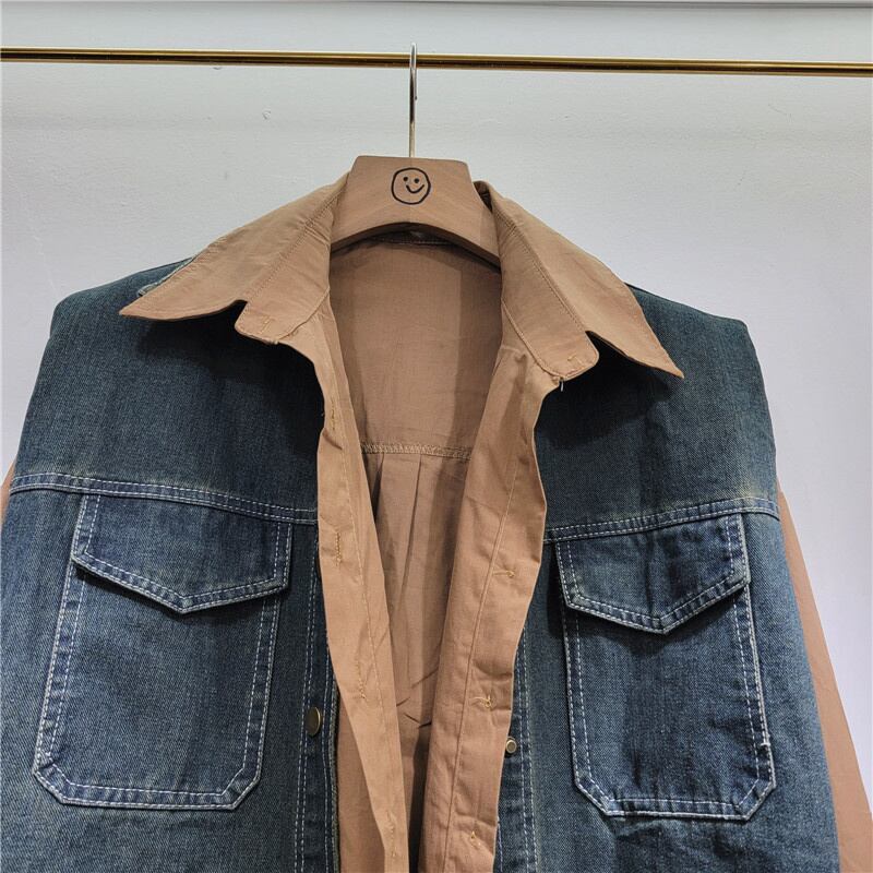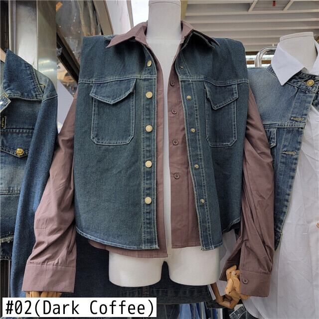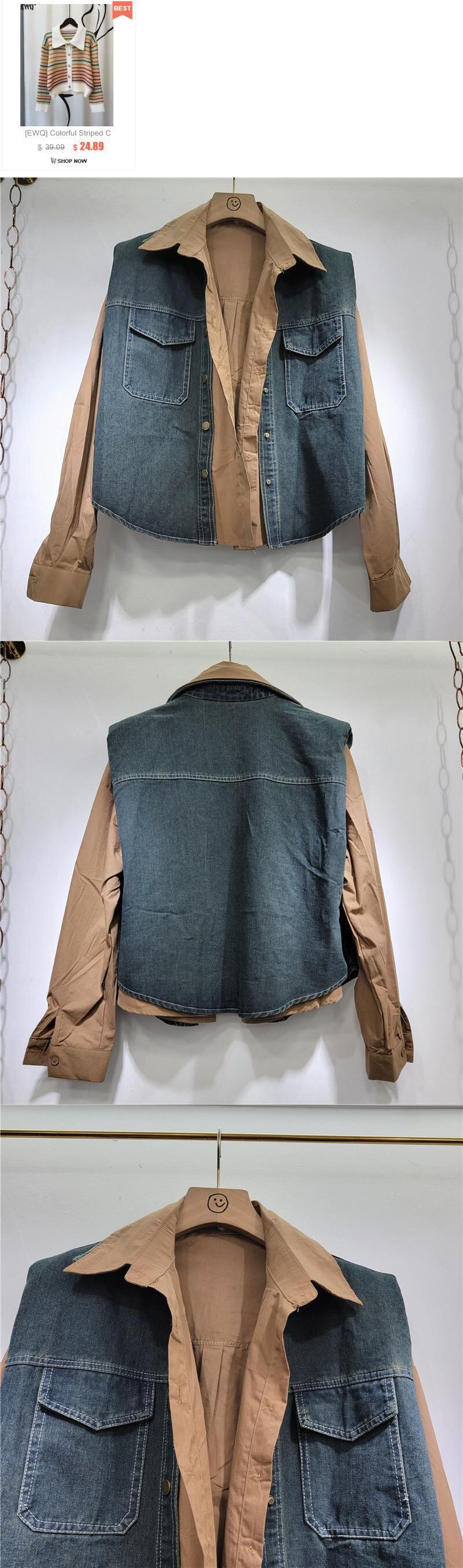 [EWQ] 肩パッドデニムベスト+長袖シングルブレストコーヒーシャツ秋冬タイドトップ 16U3966 ロング オータム 秋物 ウィンター 冬物