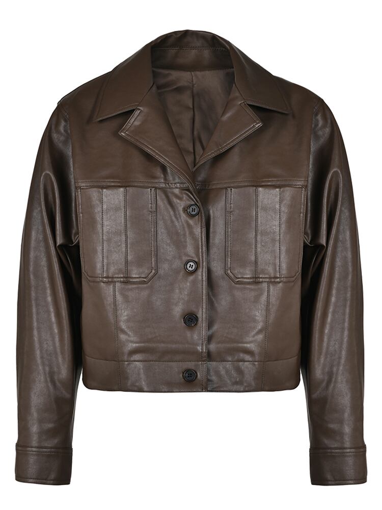 [EWQ] PU レザージャケット気質シングルブレストコーヒーコート春秋アウター潮トップス 16U4025 スプリング 春物 オータム 秋物