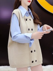 [EWQ] ダブルブレストセータービッグサイズ O ネックルーズニットチョッキトップ秋潮オールマッチベスト 16U4418 オータム 秋物 Oネック