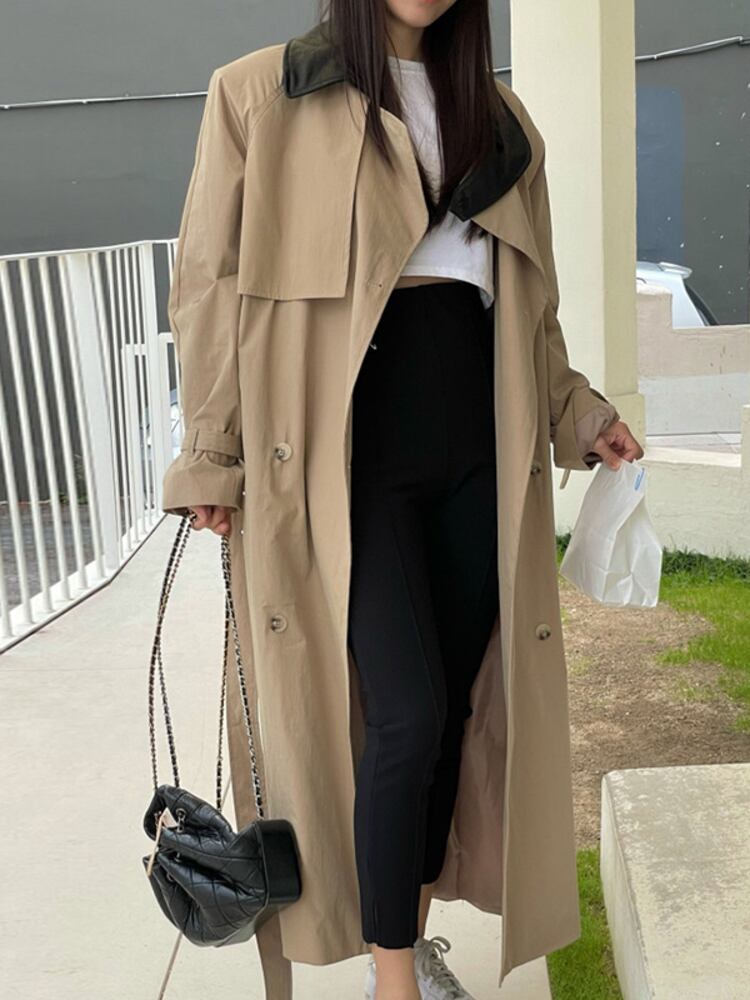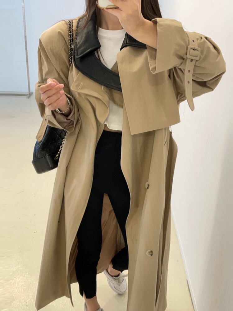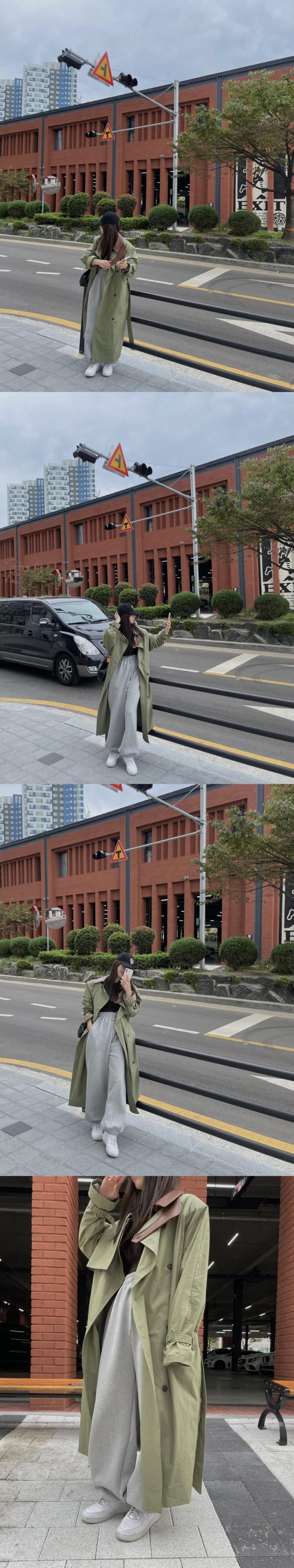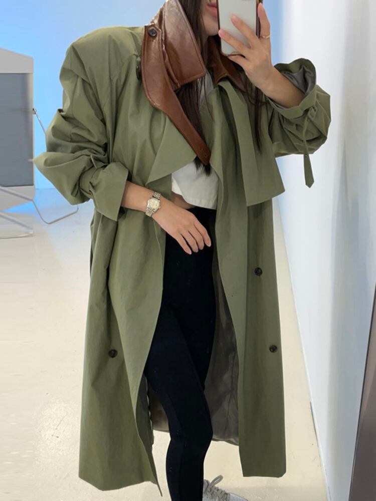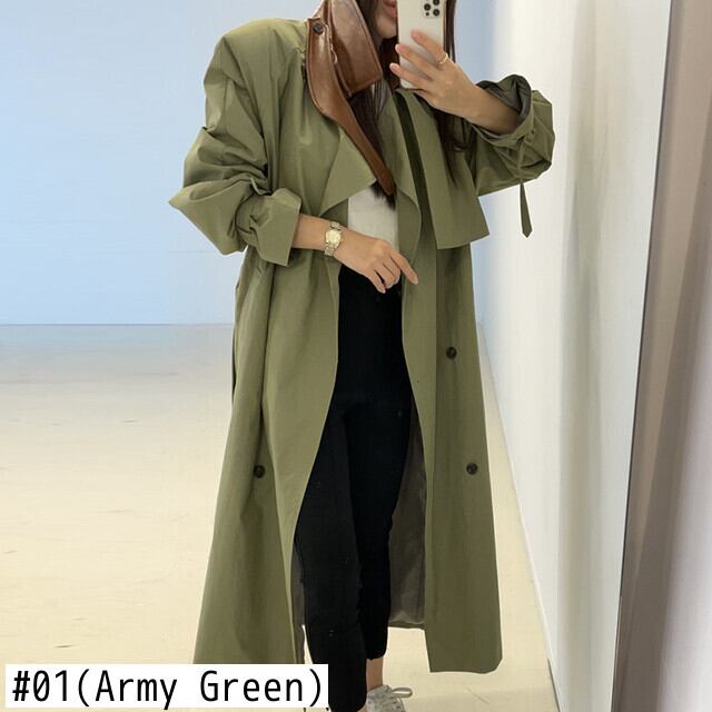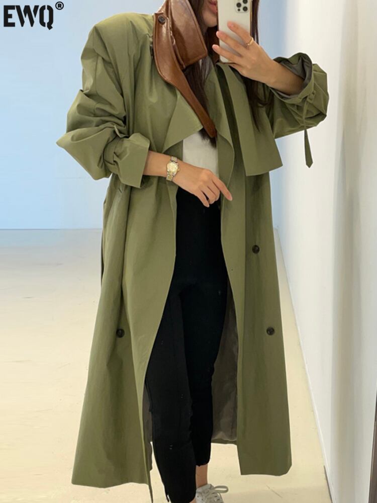 [EWQ] サファリスタイルアーミーグリーンウインドブレーカーコート秋冬潮生き抜く長袖ルーズトレンチジャケット 16U4895 ロング オータム 秋物 ウィンター 冬物