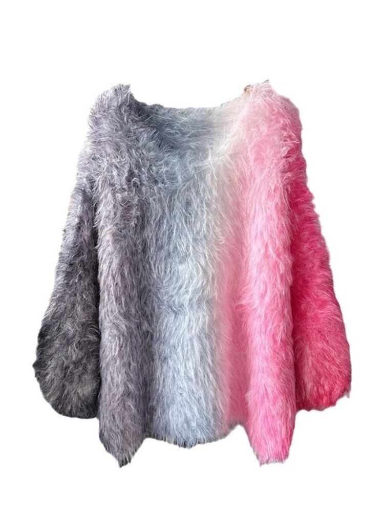 [EWQ] タイダイミンクカシミヤセーターコントラストカラフルソフト暖かい長袖プルオーバーニット秋冬 6U5102 ロング オータム 秋物 ウィンター 冬物