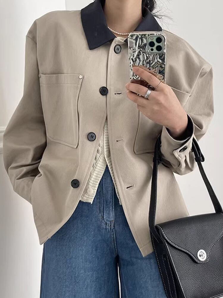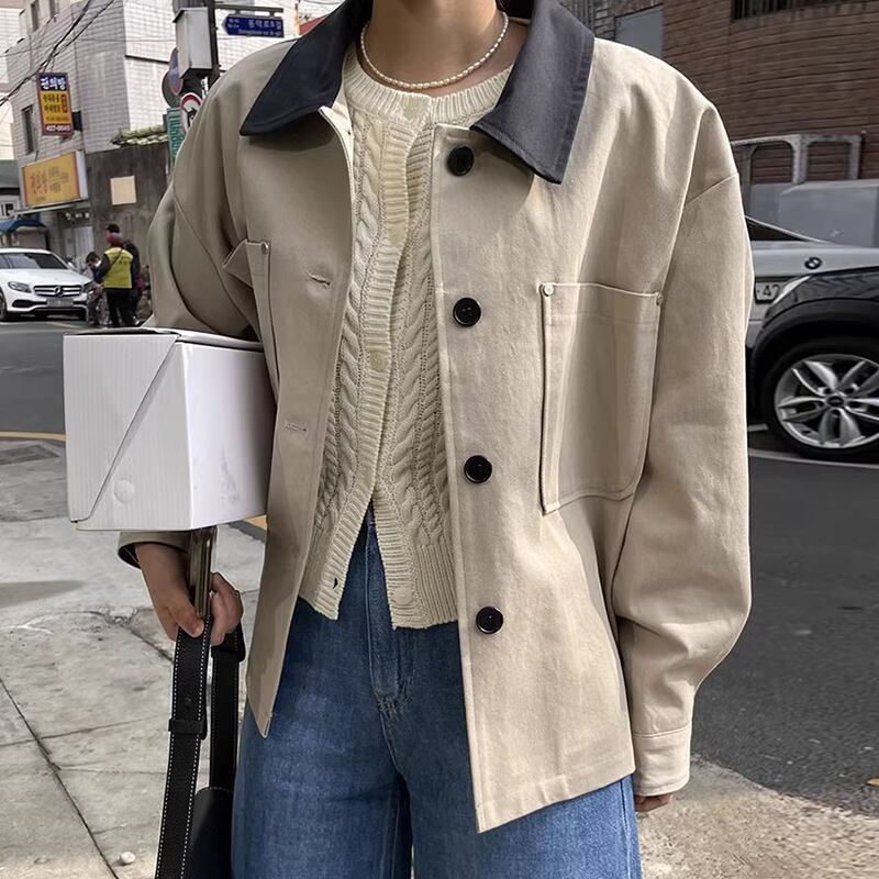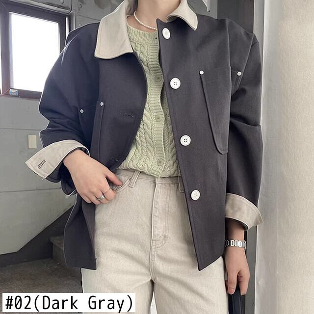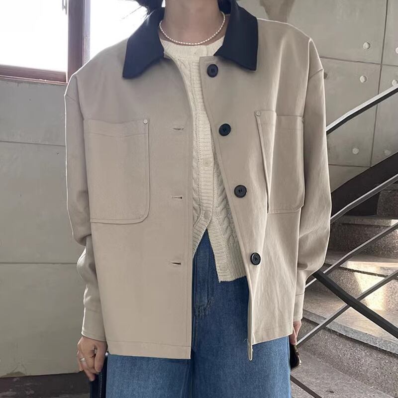 [EWQ] ビッグダブルポケットジャケット長袖ラペルパッチワークコントラストルーズジャケットコート秋冬 16U4202 ロング オータム 秋物 ウィンター 冬物