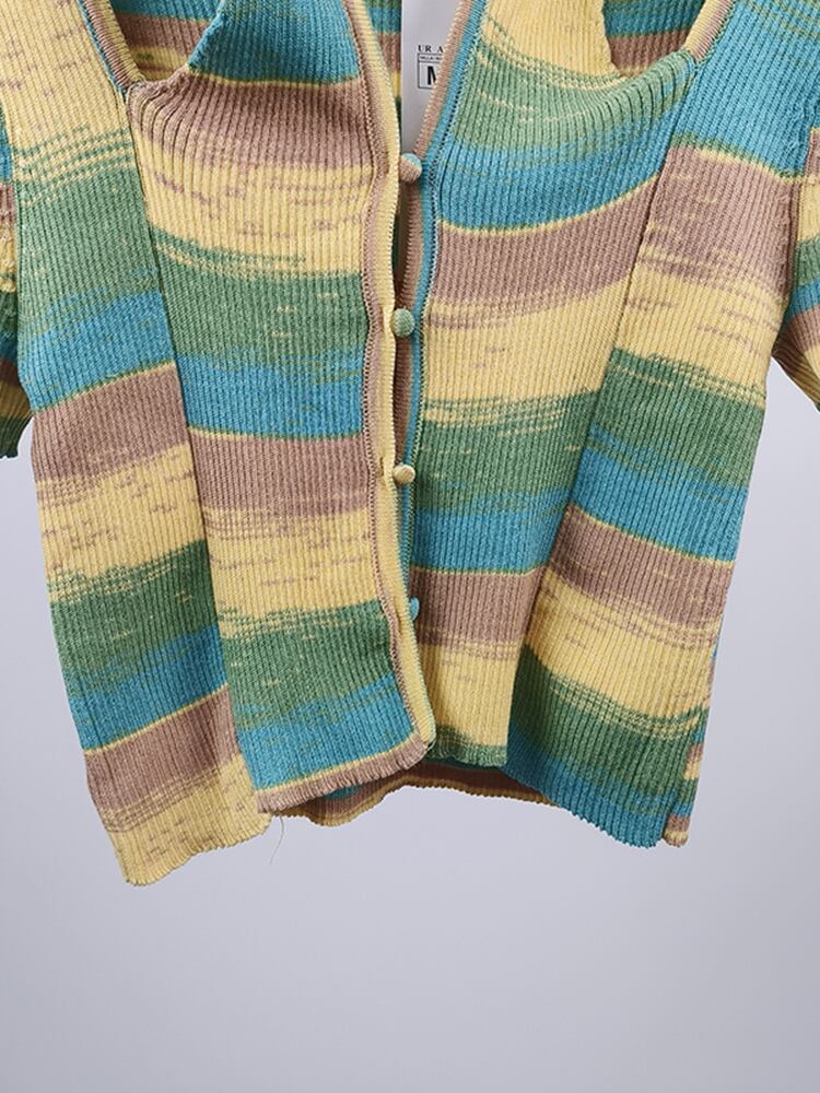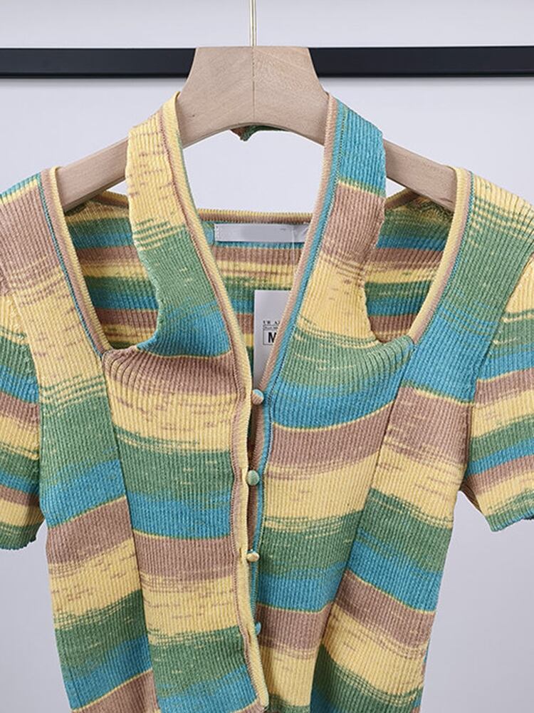 [EWQ] Sweet レディース ホルター O ネック ストライプ セーター Tシャツ 半袖 スリム 伸縮性 トップス 秋冬 16U4730 ショート ハーフスリーブ エラスティック 大人ガーリー スウィート キュート カジュアル オータム 秋物 ウィンター 冬物 Oネック