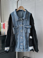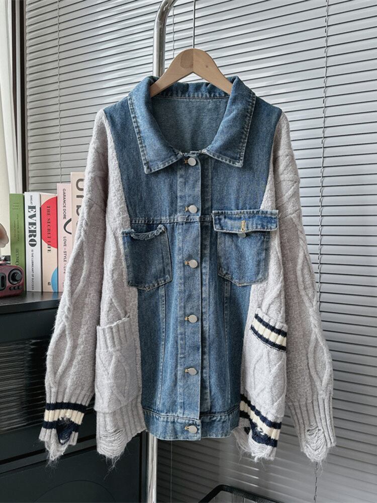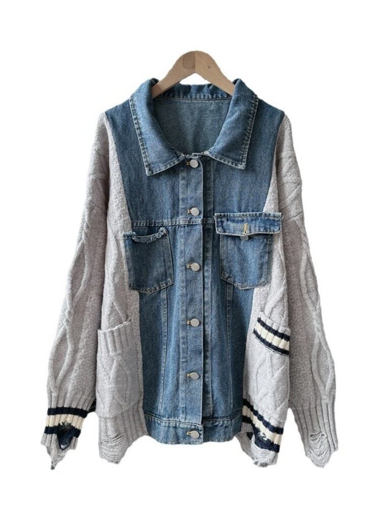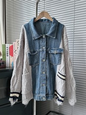 [EWQ] デニムスプライシングビッグサイズカーディガンコート長袖シングルブレスト厚いセータージャケット秋冬 16U5116 ロング オータム 秋物 ウィンター 冬物