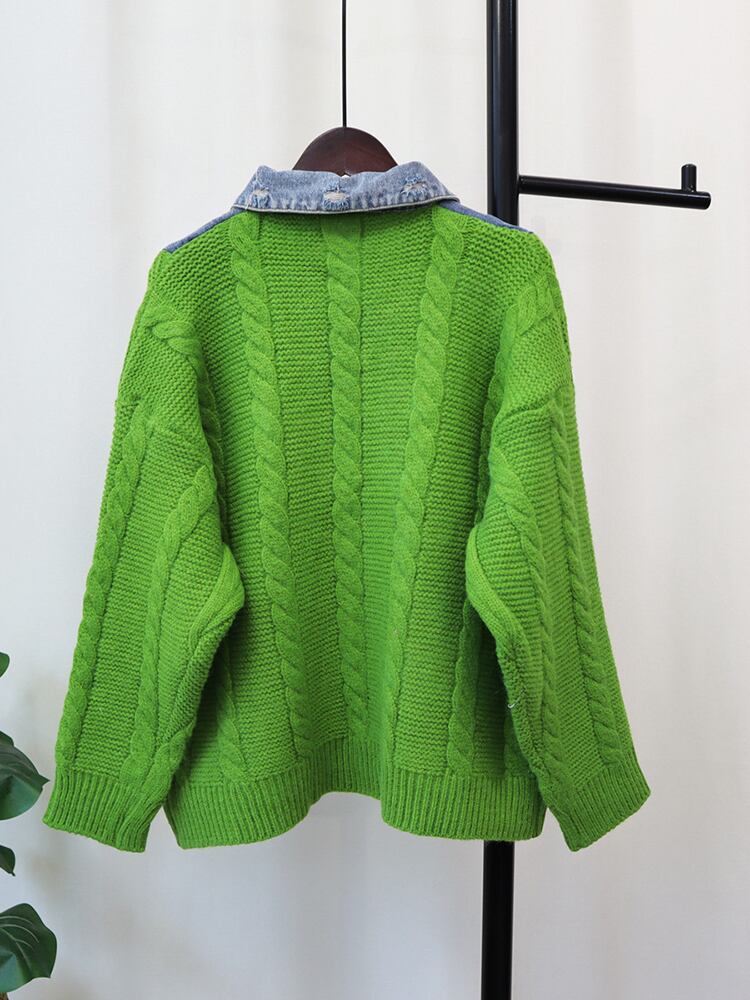 [EWQ] デニム パッチワーク ポケット カーディガン コート レディース 長袖 ビッグサイズ セーター ジャケット 秋冬 16U4232 ロング オータム 秋物 ウィンター 冬物