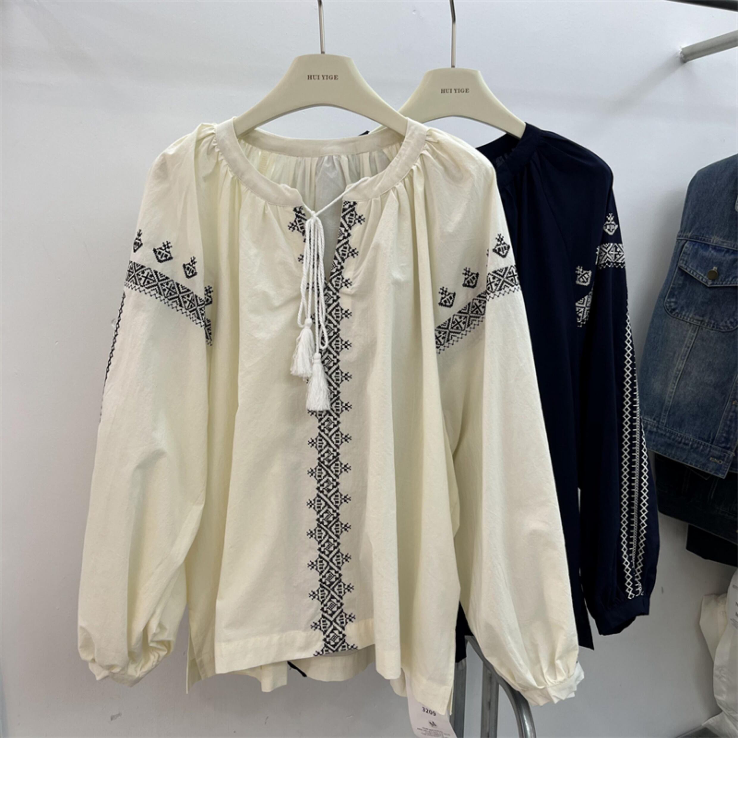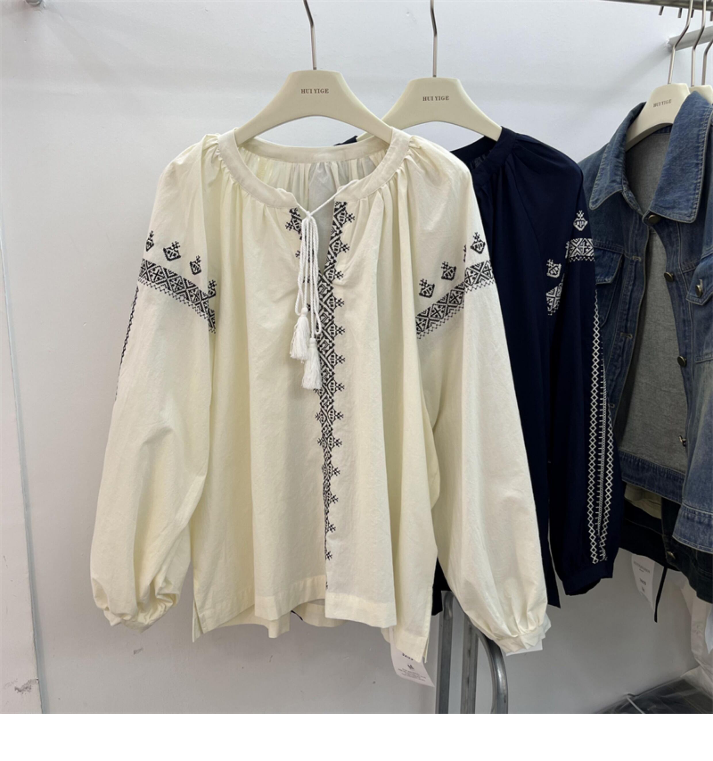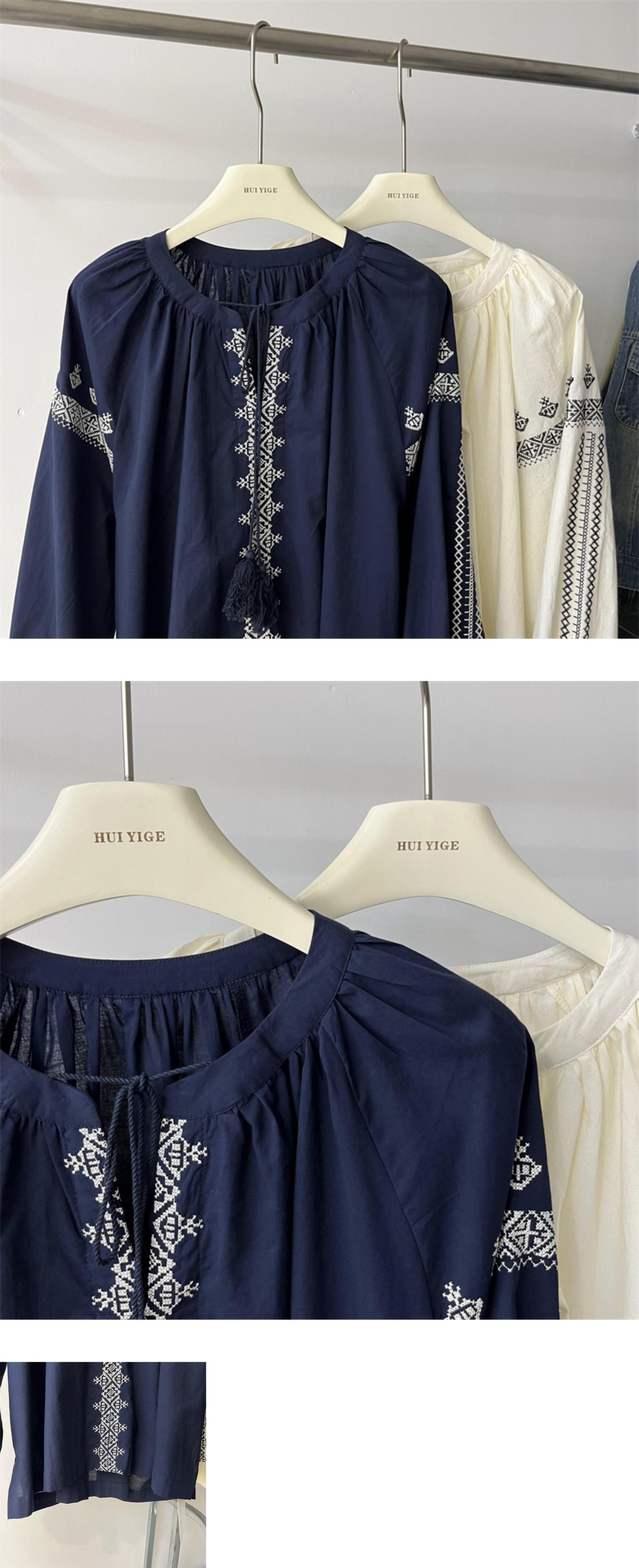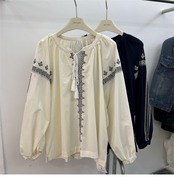 [EWQ] 刺繍シャツ レディース Oネック レースアップ 長袖 ゆったり 秋冬服 16U4834 ロング オータム 秋物 ウィンター 冬物