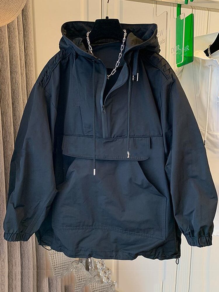 [EWQ] ホワイトオーバーサイズフード付きポケットスウェットシャツ秋冬長袖プリーツ長袖プルオーバー 16U4969 ロング オータム 秋物 ウィンター 冬物