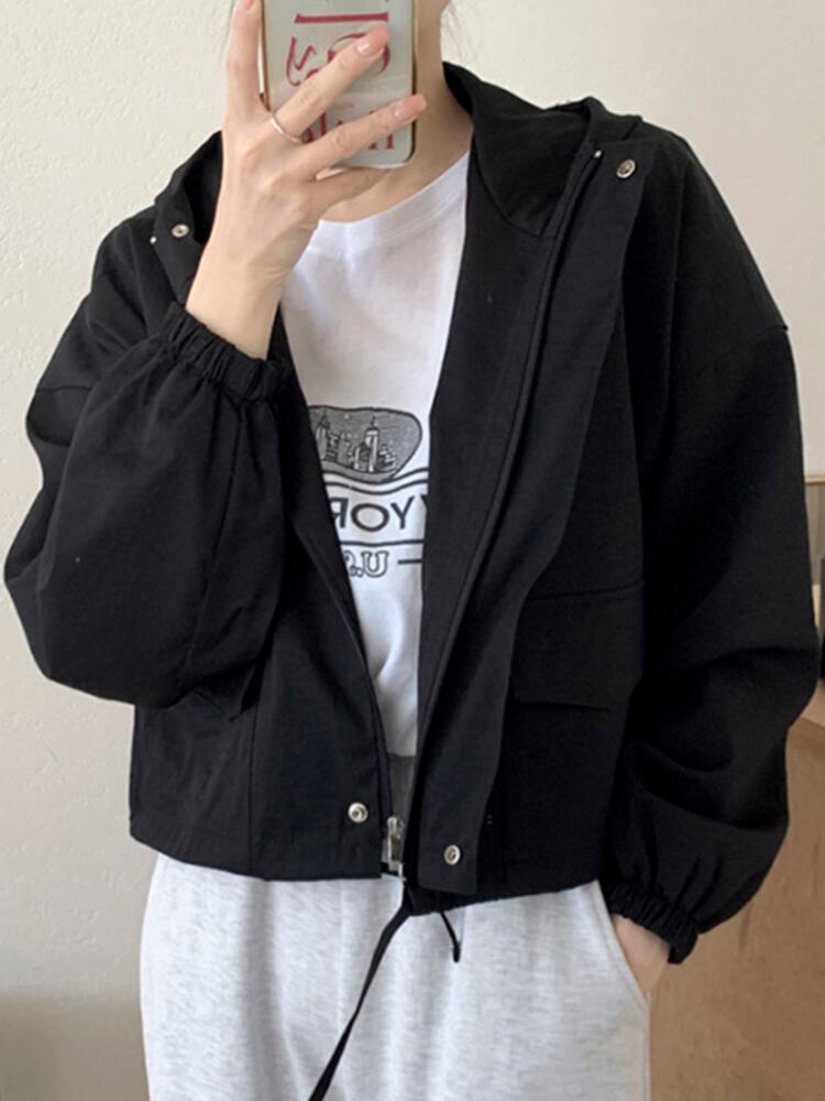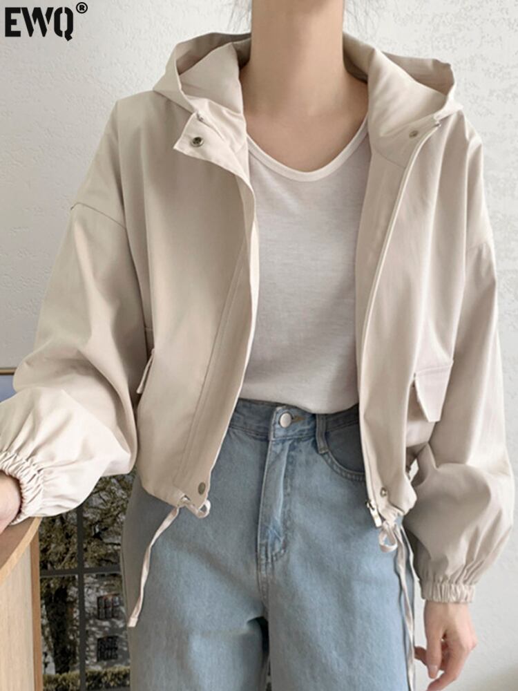 [EWQ] フード付きジッパージャケットルーズスリーブジャケット弾性袖口ショートジャケットコート秋冬新作 16U4153 エラスティック 伸縮 オータム 秋物 ウィンター 冬物