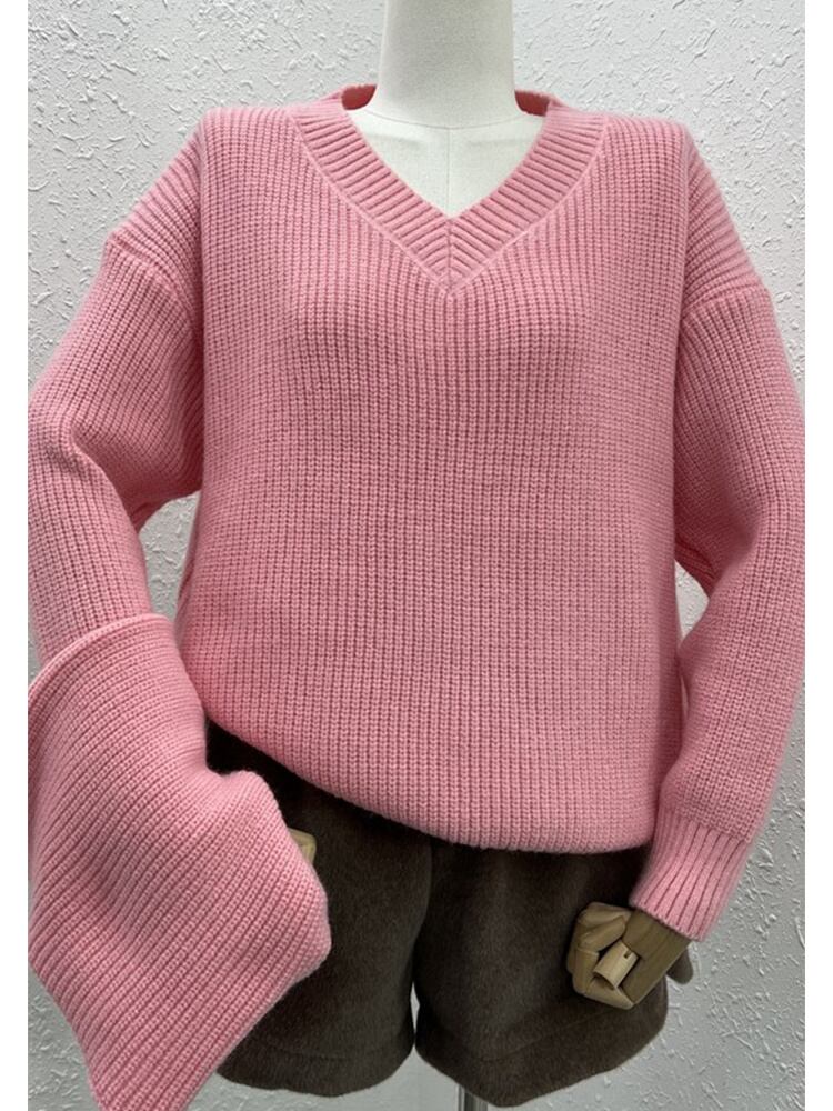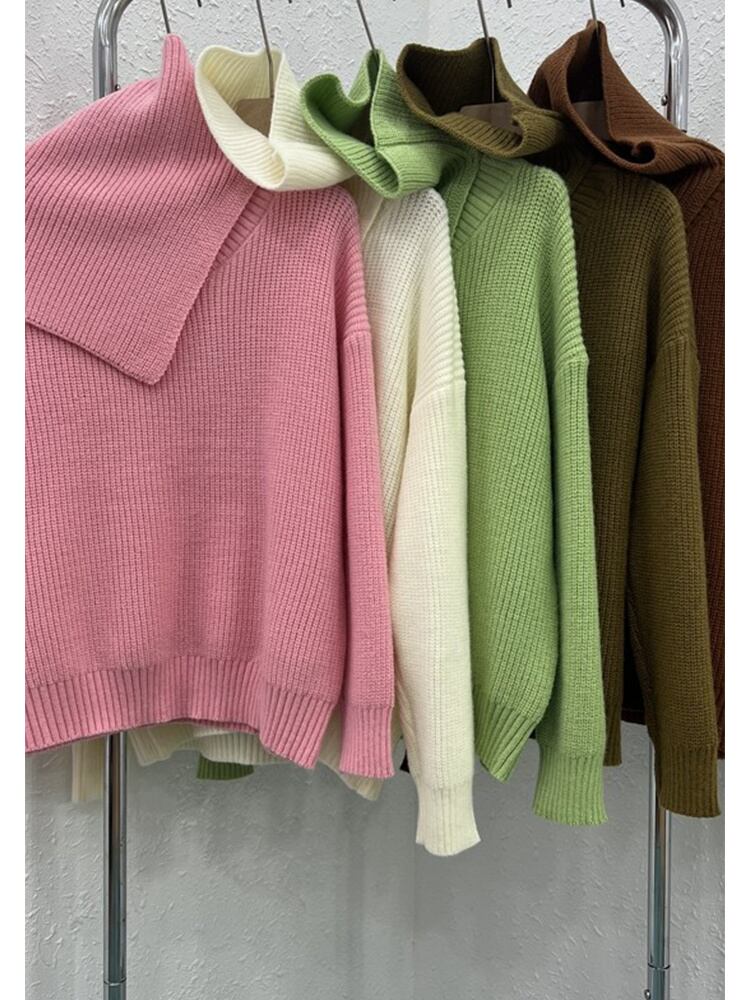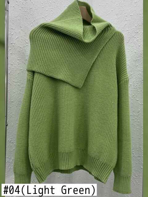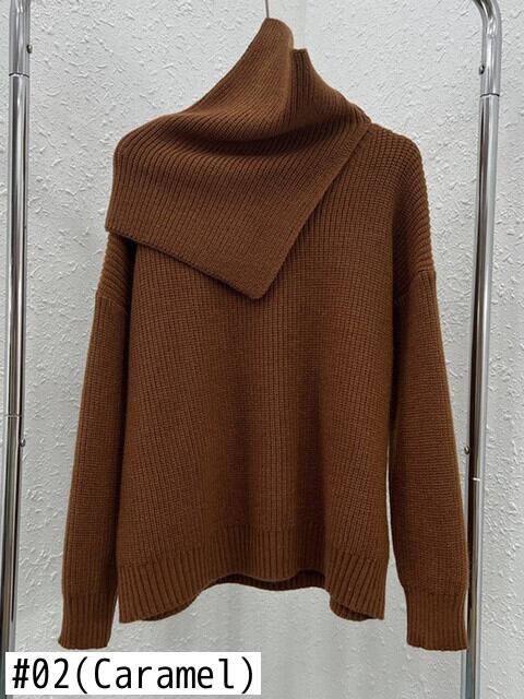 [EWQ] 不規則スカーフ + V ネックルーズセーター長袖プルオーバーニットトップ秋冬服 16U4514 ロング オータム 秋物 ウィンター 冬物 Vネック