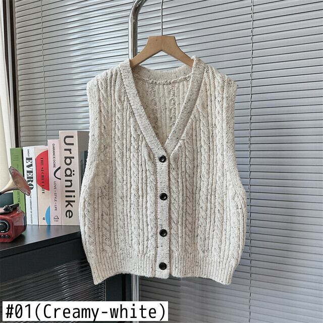[EWQ] 気質 V ネックツイストニットベストシングルブレスト弾性セータータンクトップ秋冬 16U5093 エラスティック 伸縮 オータム 秋物 ウィンター 冬物 Vネック